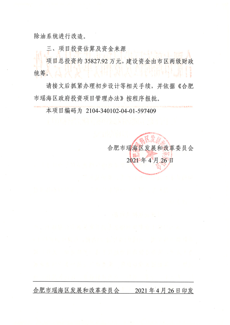 | 索引号: | 11340102556340713k /202104-00003 | 信息分类: | 政府投资项目建议书审批 |