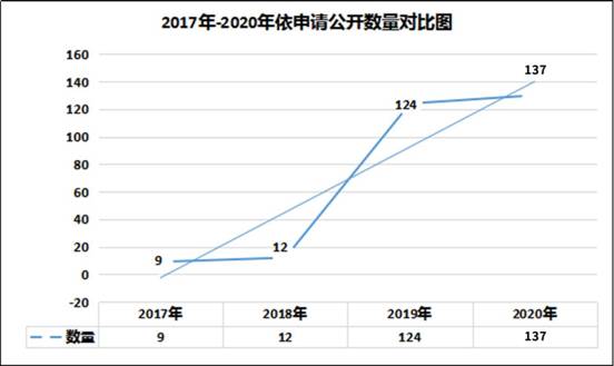 自2017年以来,我区依申请公开流程不断规范,群众对依申请的需求也不断增加,依申请公开数量持续递增,具体数据分析见图2。