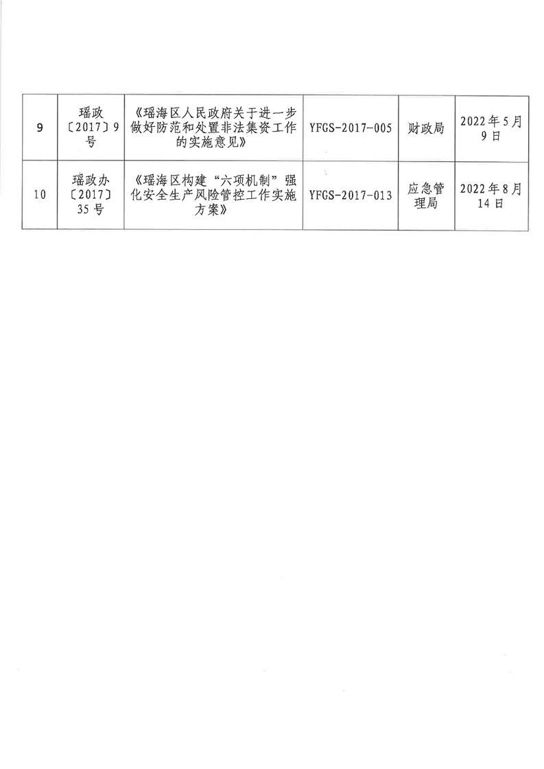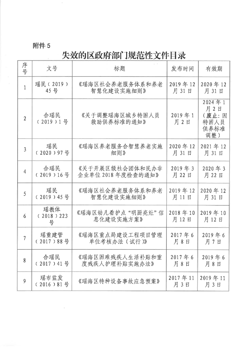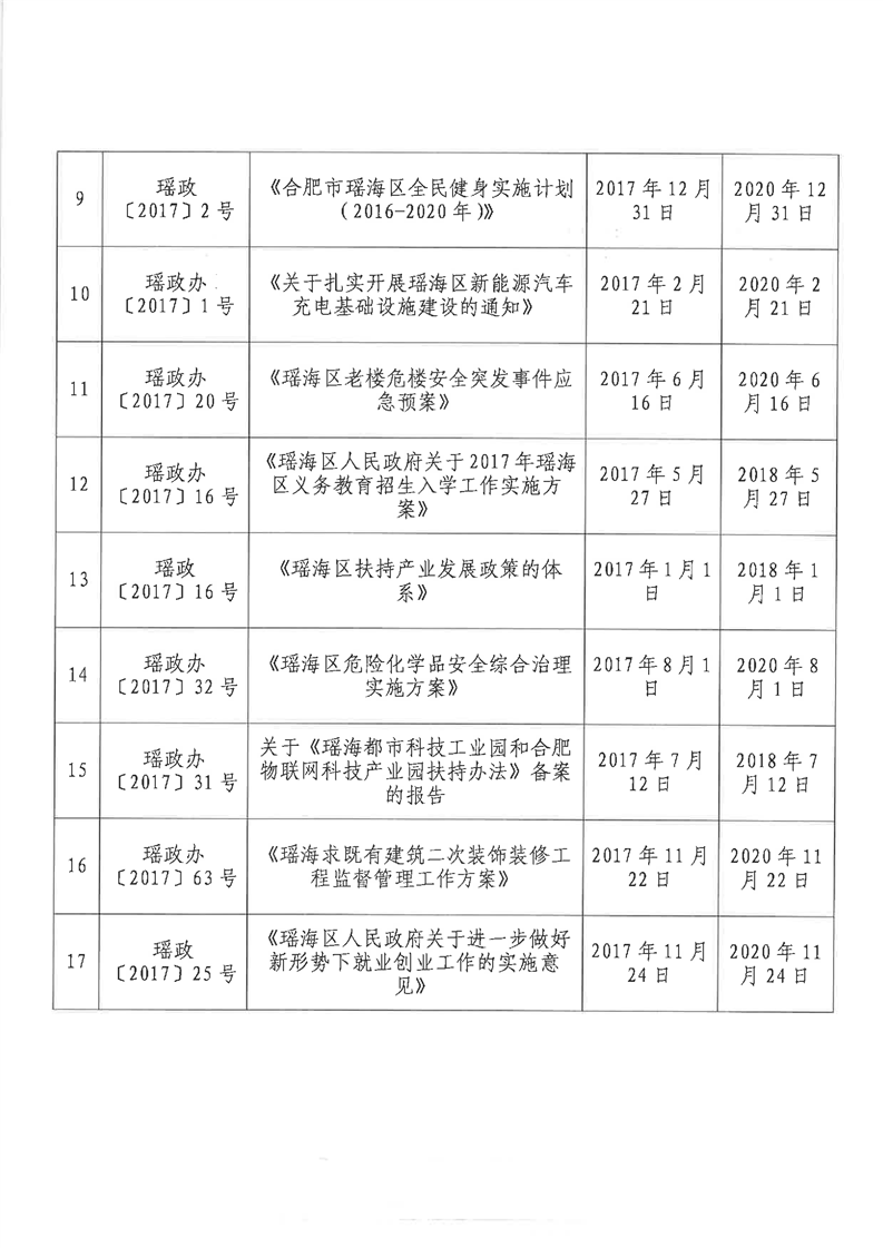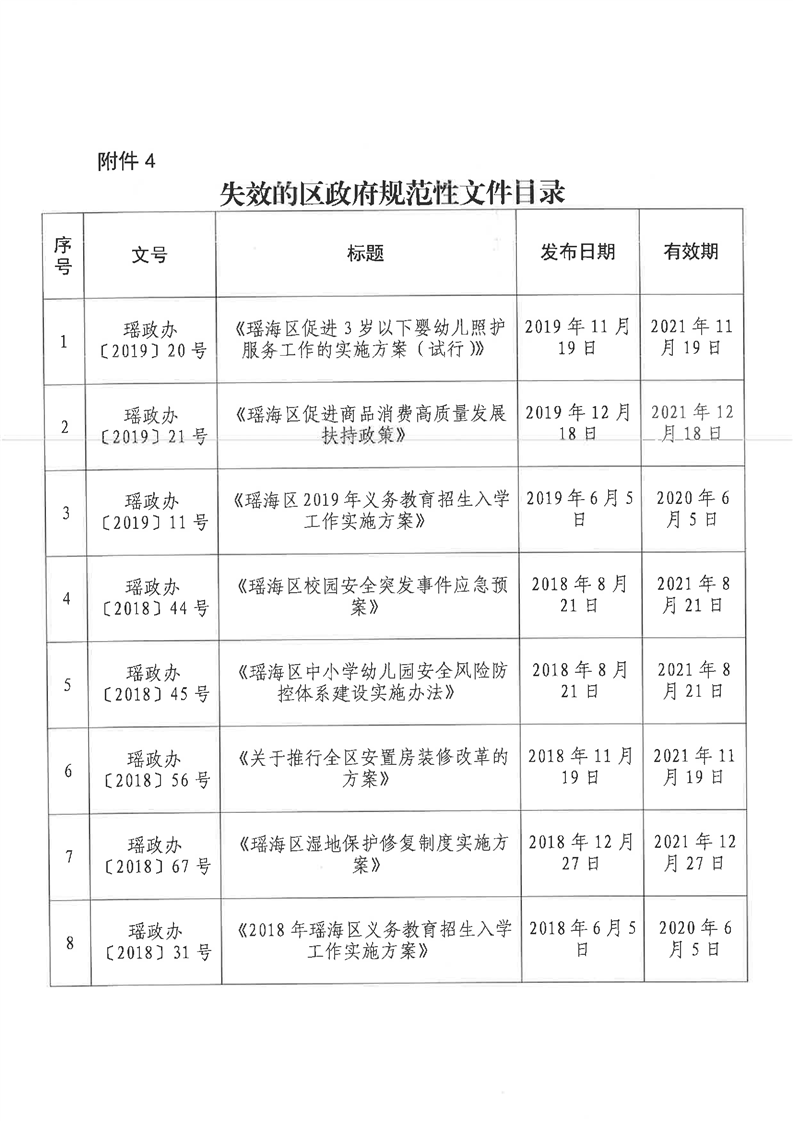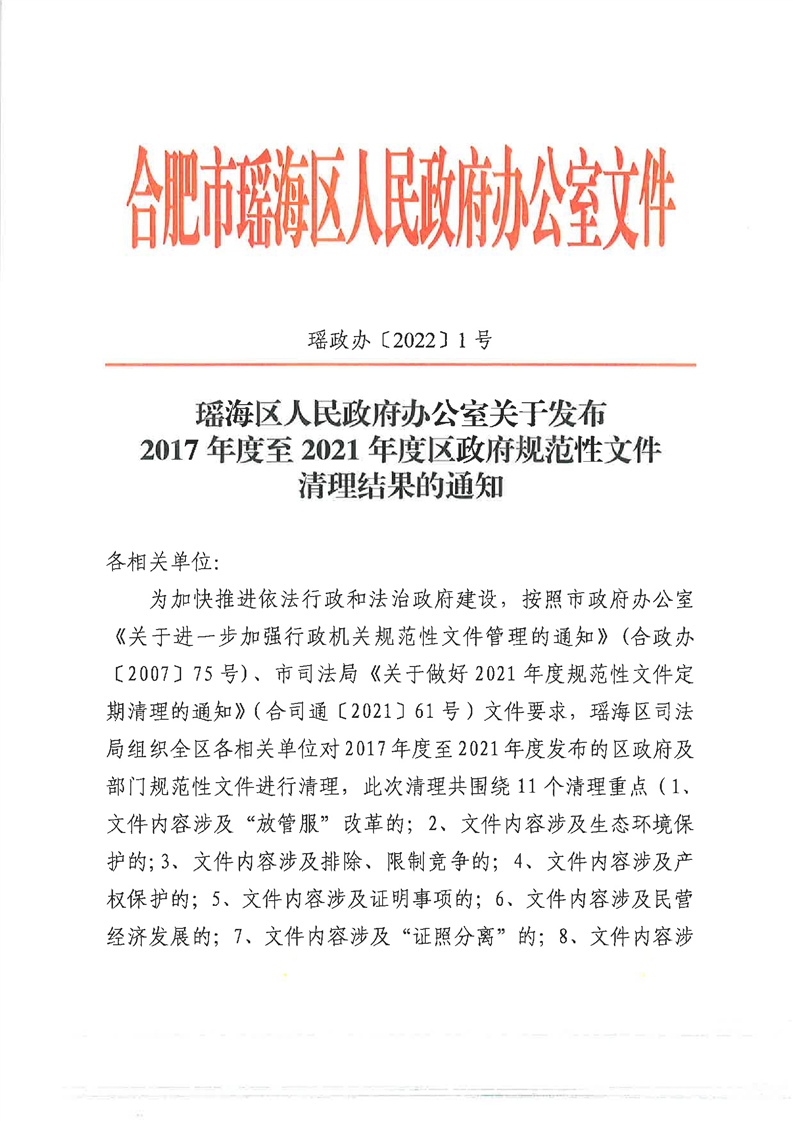 【清理结果】瑶海区人民政府办公室关于发布2017年度至2021年度区政府规范性文件清理结果的通知