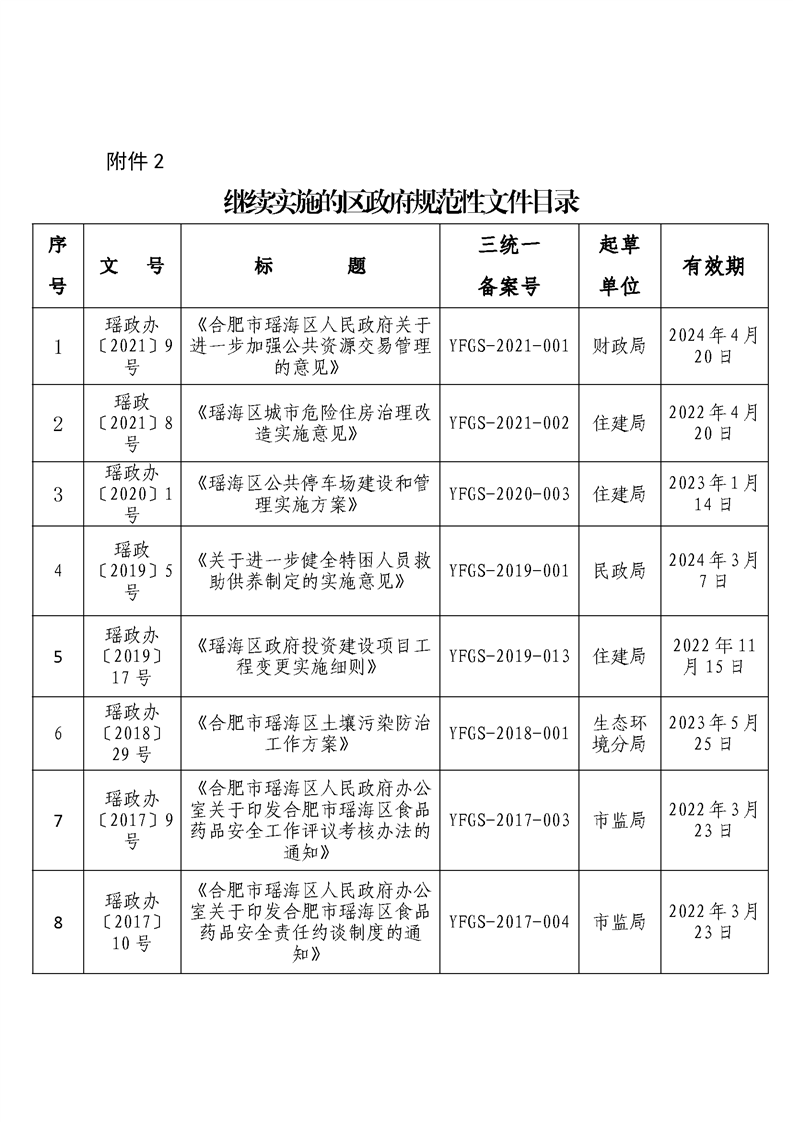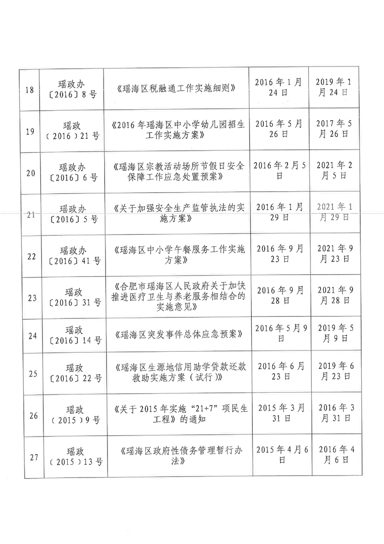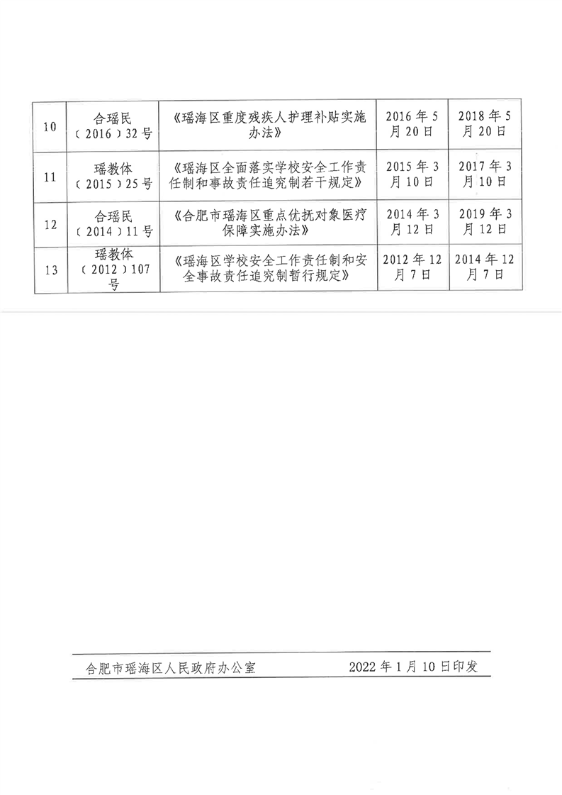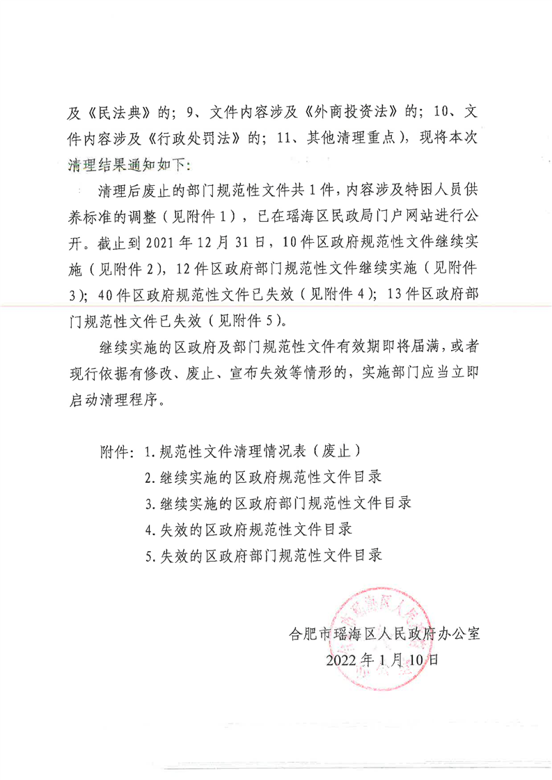 【清理结果】瑶海区人民政府办公室关于发布2017年度至2021年度区政府规范性文件清理结果的通知 |