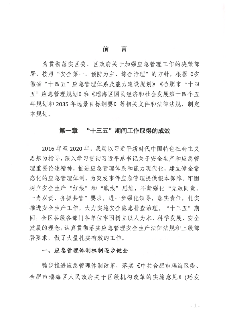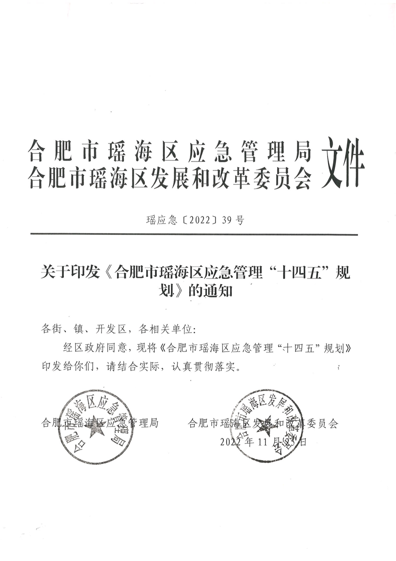 关于印发《合肥市瑶海区应急管理“十四五”规划》的通知