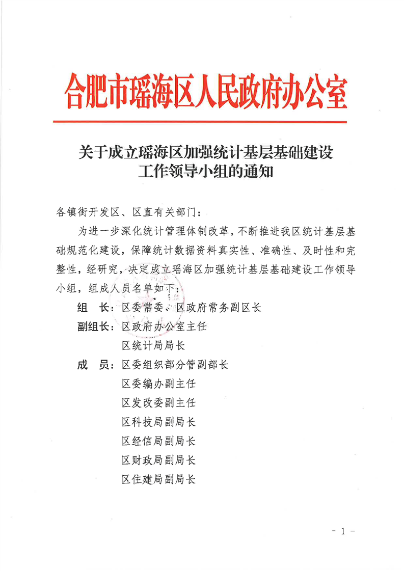 关于成立瑶海区加强统计基层基础建设工作领导小组的通知 |