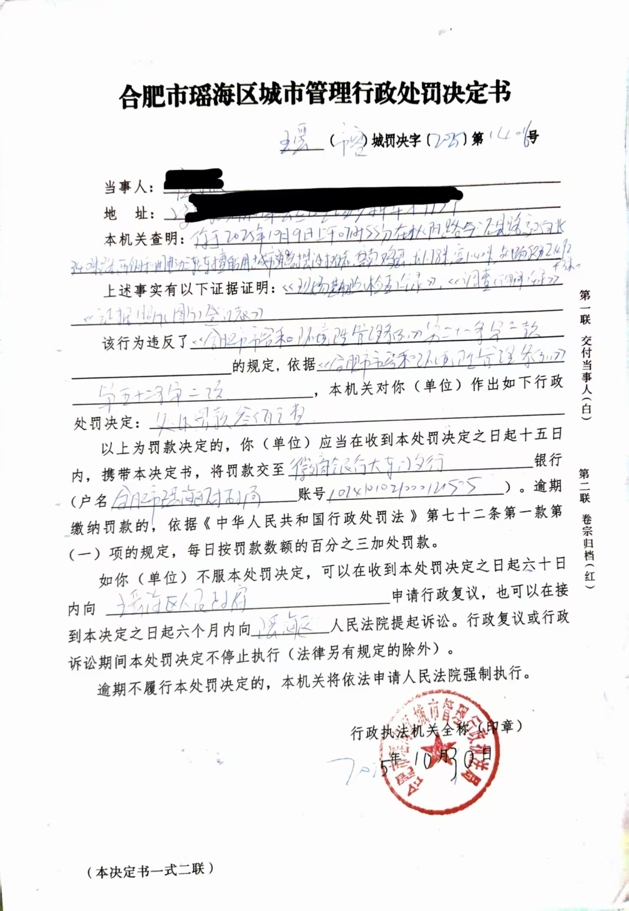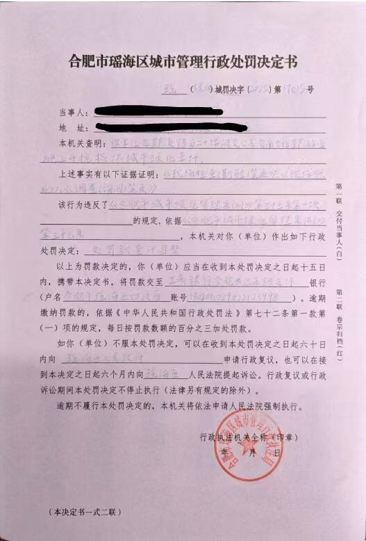 瑶海区2025年10月份行政处罚文书