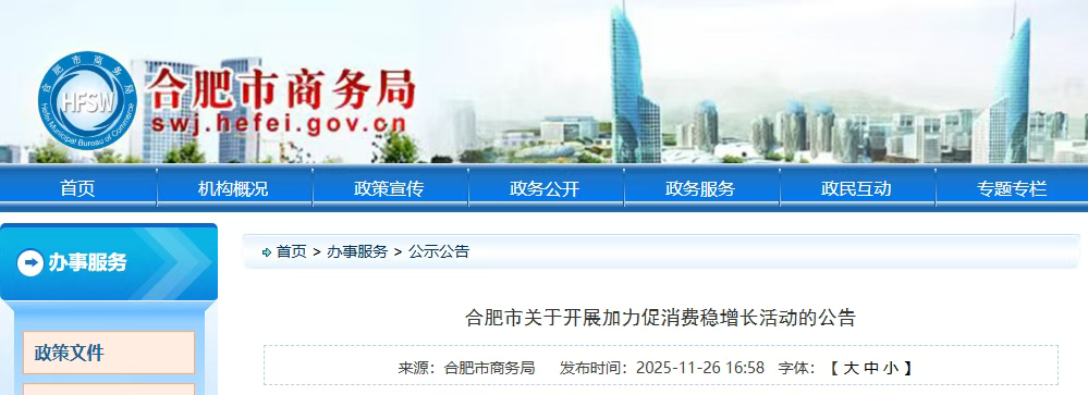 根据安徽省商务厅、财政厅工作安排,为进一步激活2025年年底合肥市消费市场,11月26日至12月31日,全市发放新一轮汽车、家电及数码产品消费券(补贴)。现将有关内容公告如下: