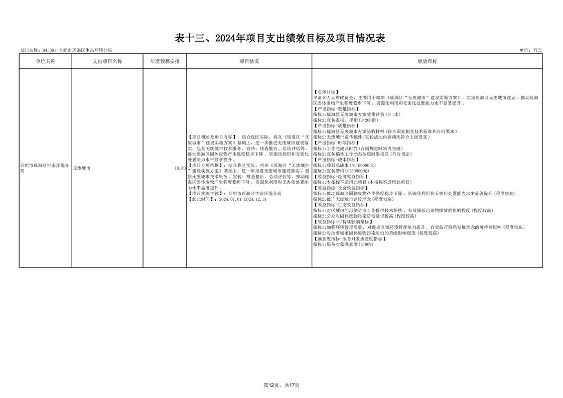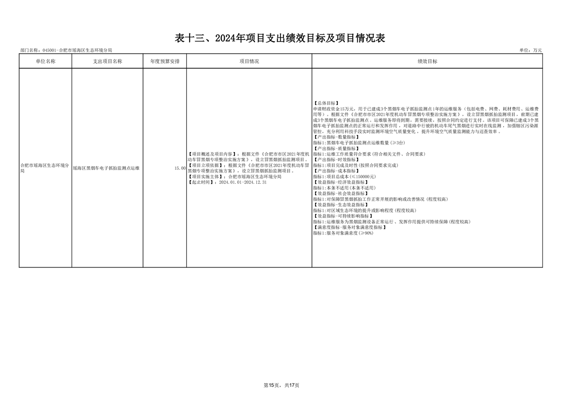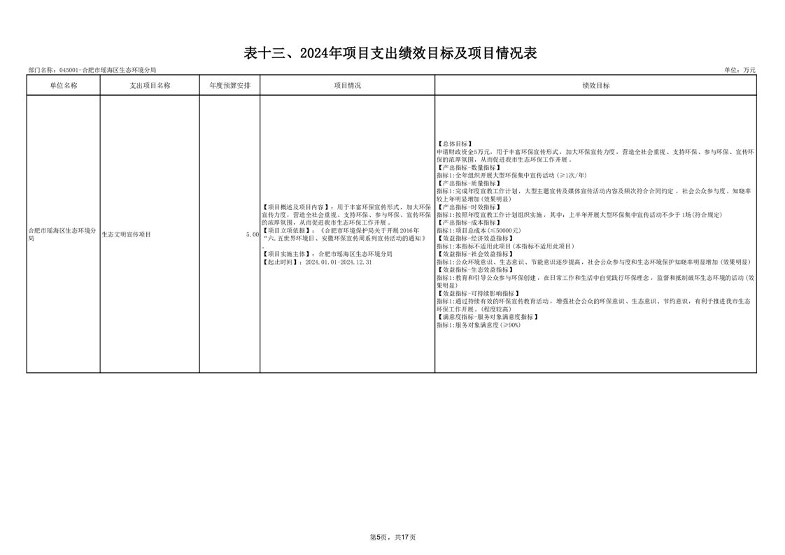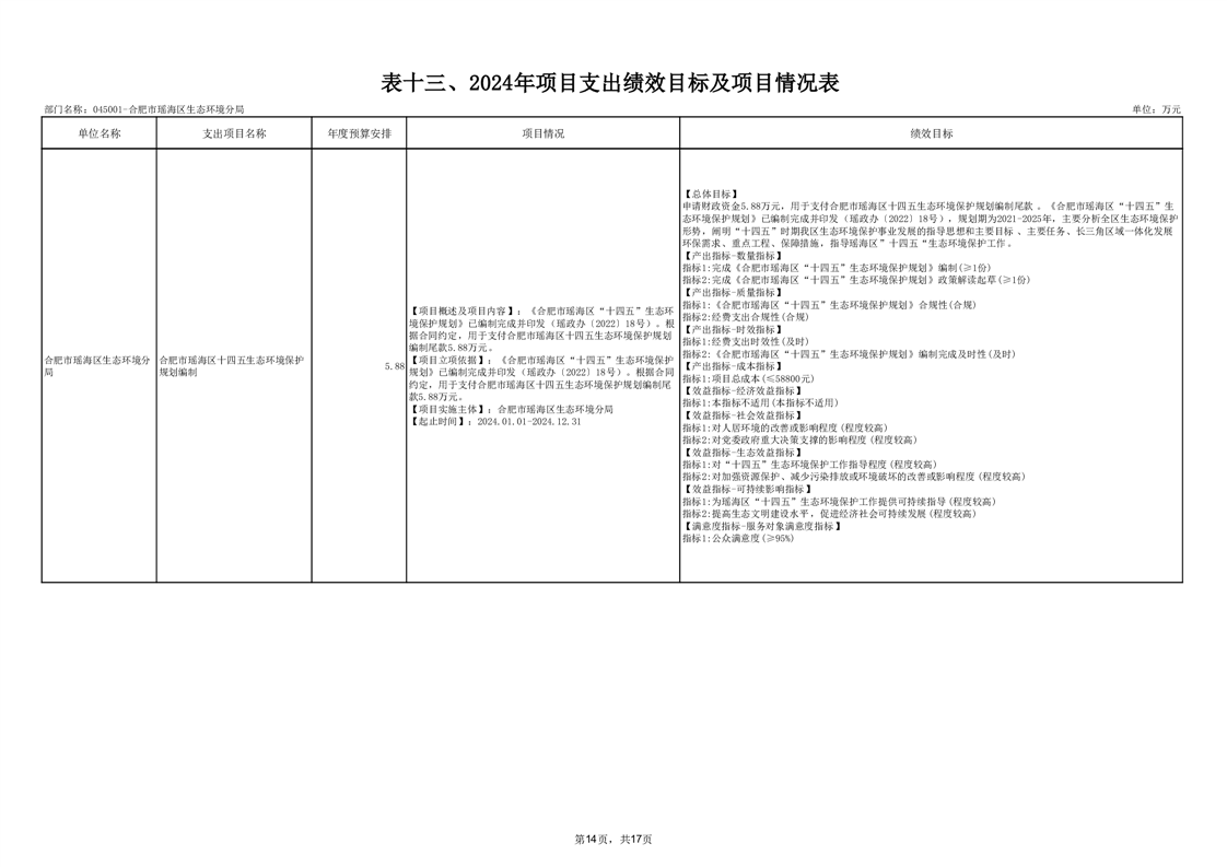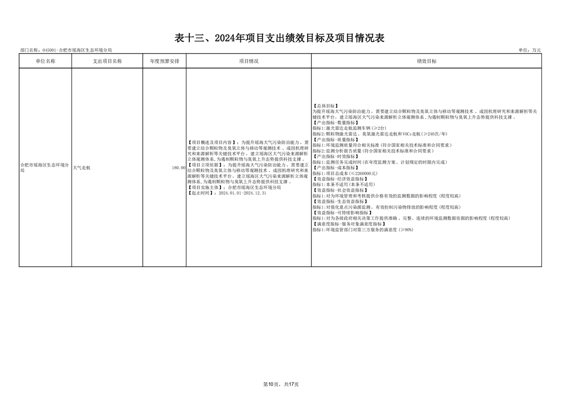 区生态环境分局2024年项目支出绩效目标及项目情况表 |