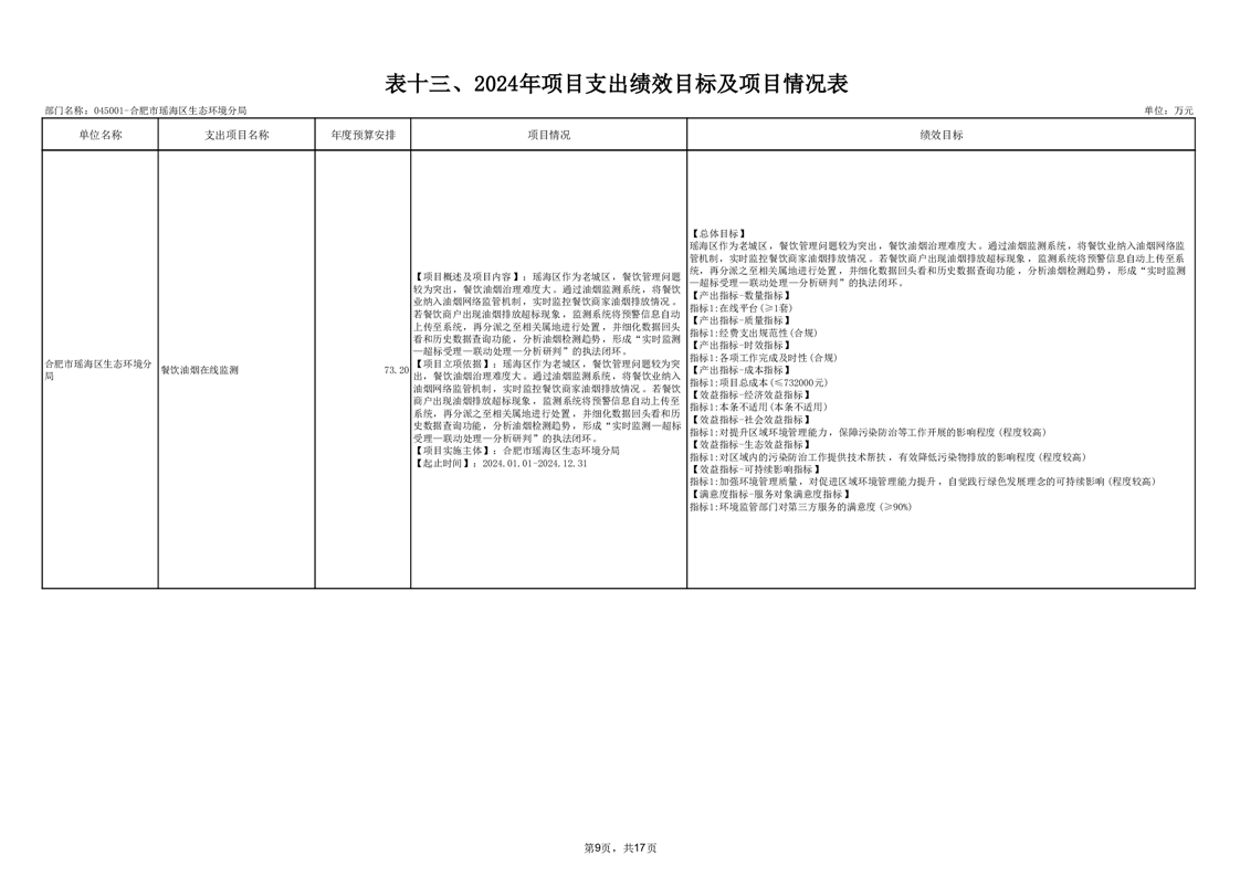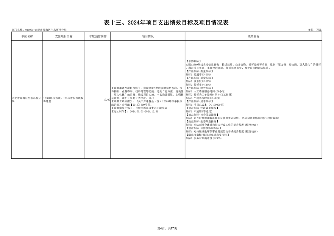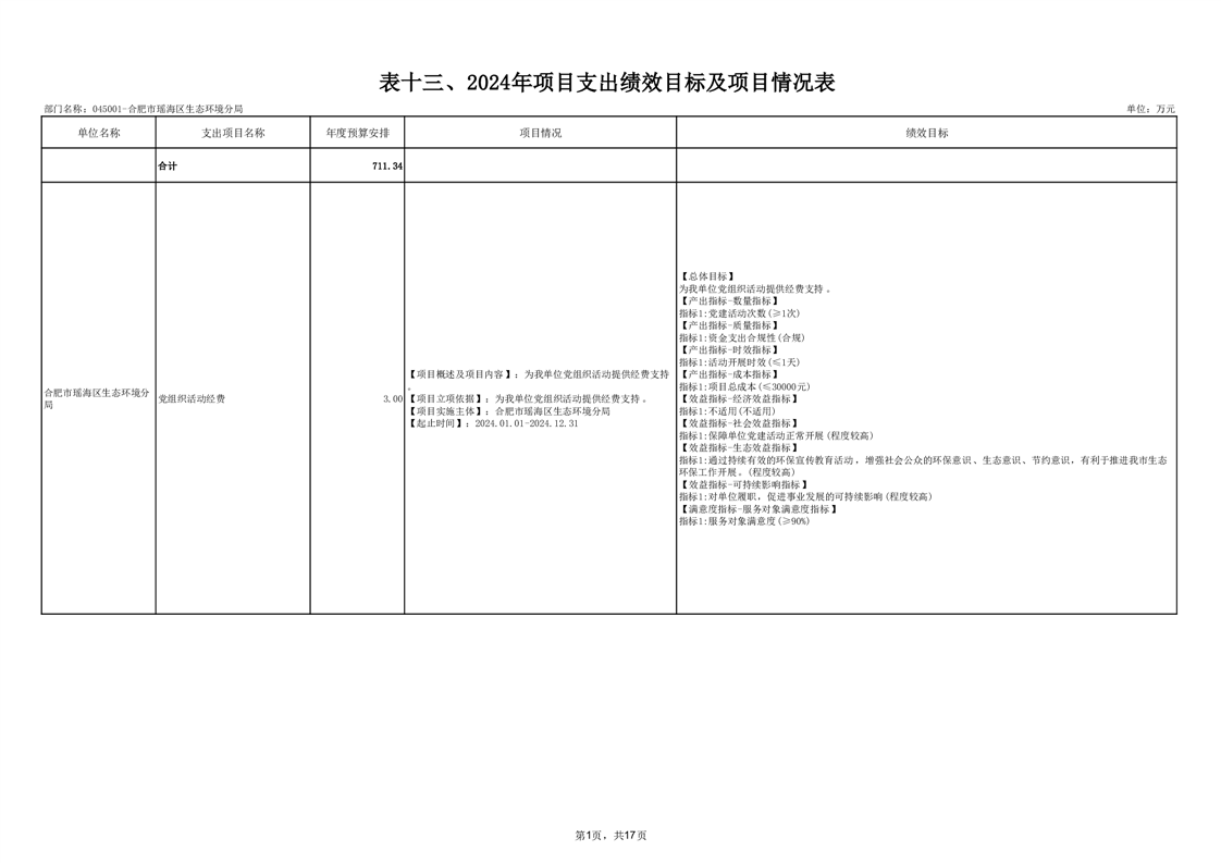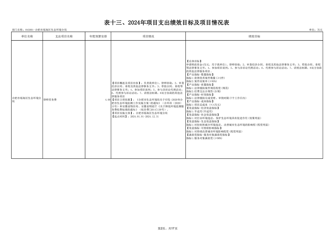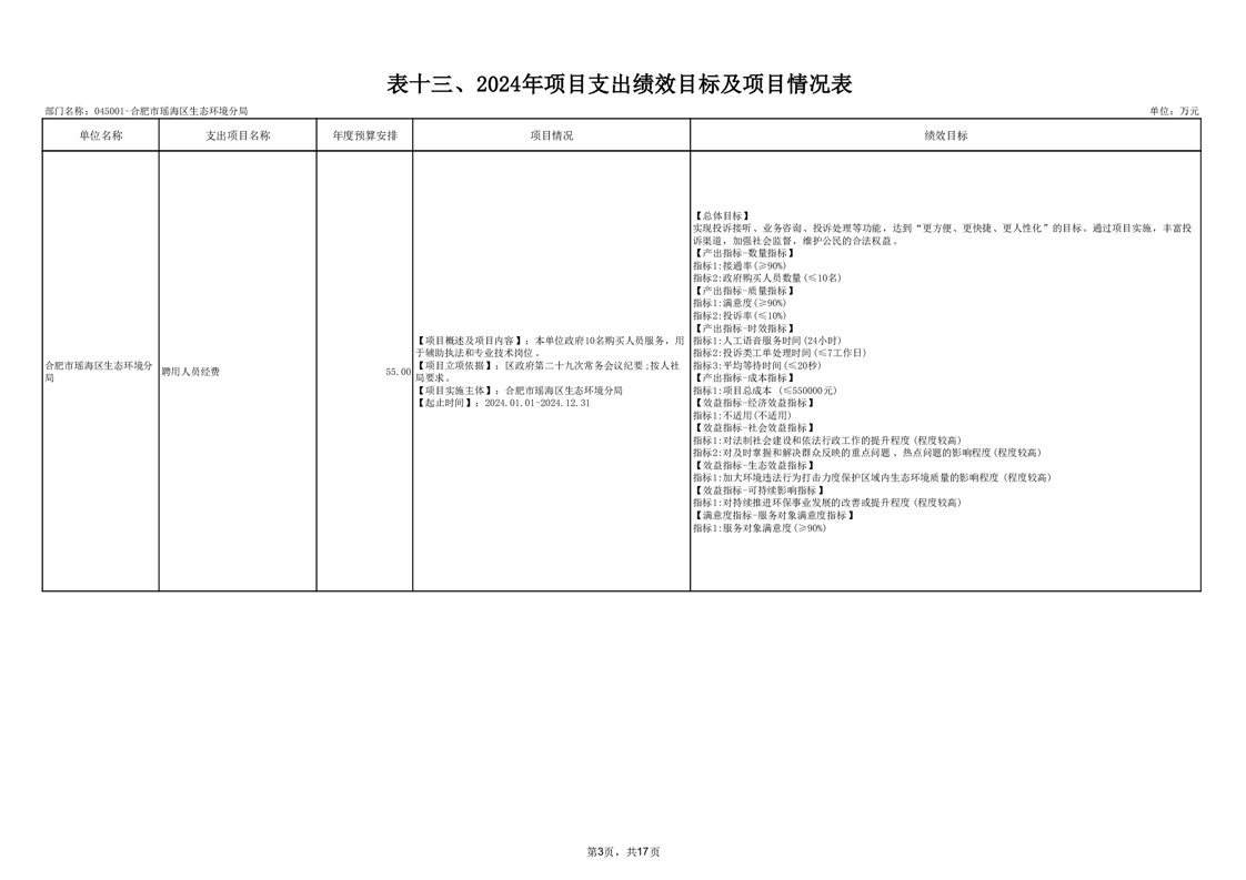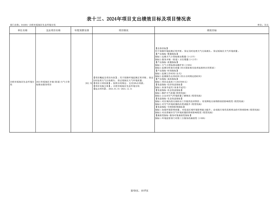 区生态环境分局2024年项目支出绩效目标及项目情况表 |