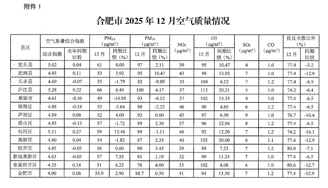 【大气污染防治】关于2025年12月和1-12月全区环境空气质量情况的通报