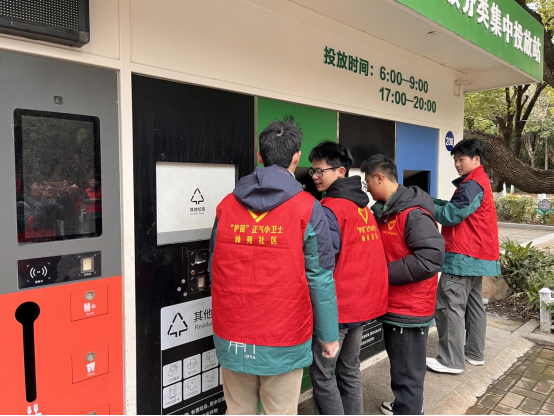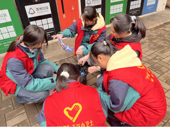 快板表演后,活动进入现场实操指导环节。志愿者们分组行动,现场示范分类标准与投放要点,手把手指导居民正确分类、精准投放。小志愿者们耐心讲解、认真纠错,在实践中加深了对环保责任的理解,成为活动中一道亮眼的文明风景。