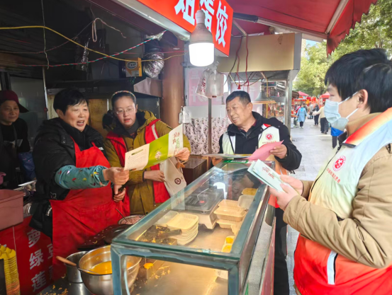 红光街道城管中队聚焦新春节日特点,精准开展宣传攻坚。2月12日,红光街道城管中队联合社区工作人员,走进枞阳路沿街商铺及二建生活区,开展“巧手迎新春,分类伴年味”主题垃圾分类宣传活动。城管队员化身宣传志愿者,面向社区居民、返乡学生、餐饮经营户、水果批发商户等重点群体,通过面对面讲解、发放宣传手册、现场答疑解惑等形式,普及垃圾分类标准、投放要求及日常注意事项,耐心纠正垃圾混投、错投等不规范行为,结合日常巡查痛点宣讲市容环境管理规定,倡导群众从自身做起,自觉践行垃圾分类,守护新春辖区洁净。