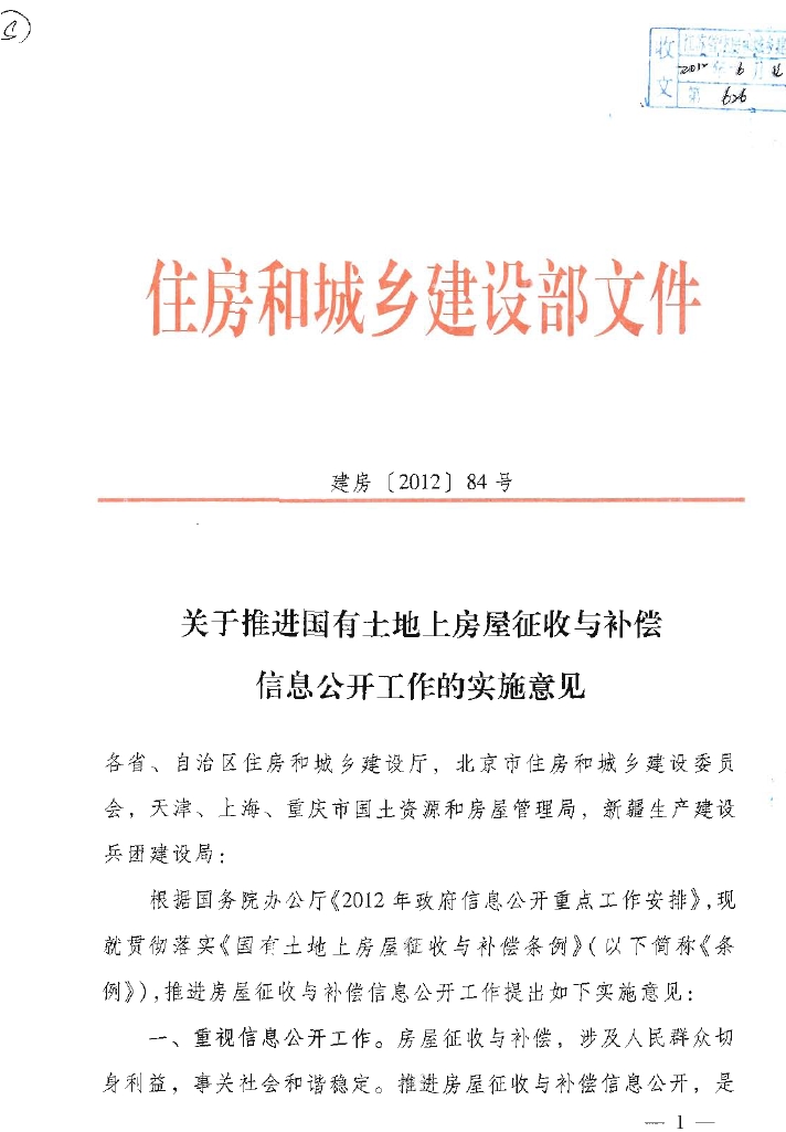 关于推进国有土地上房屋征收与补偿信息公开工作的实施意见 |