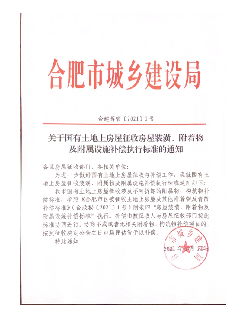 国有土地上房屋征收房屋装潢、附着物及附属(合建拆管〔2021〕1号