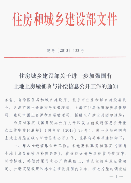 关于进一步加强国有土地上房屋征收与补偿信息公开工作的通知 |