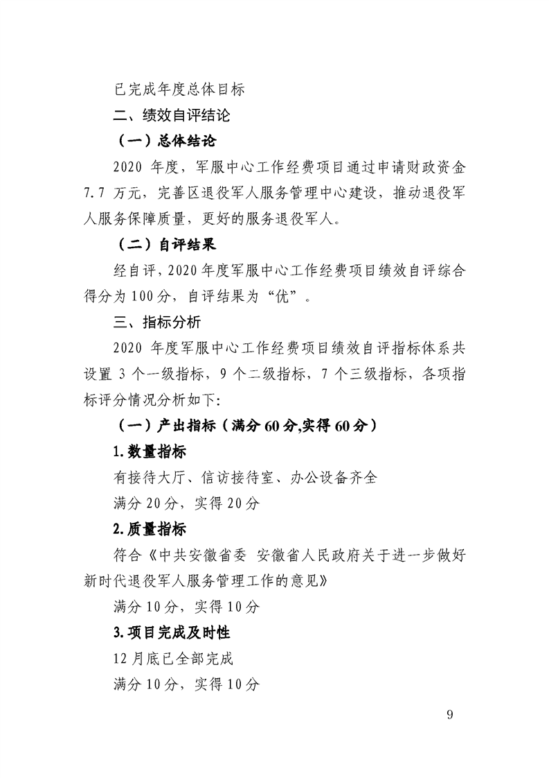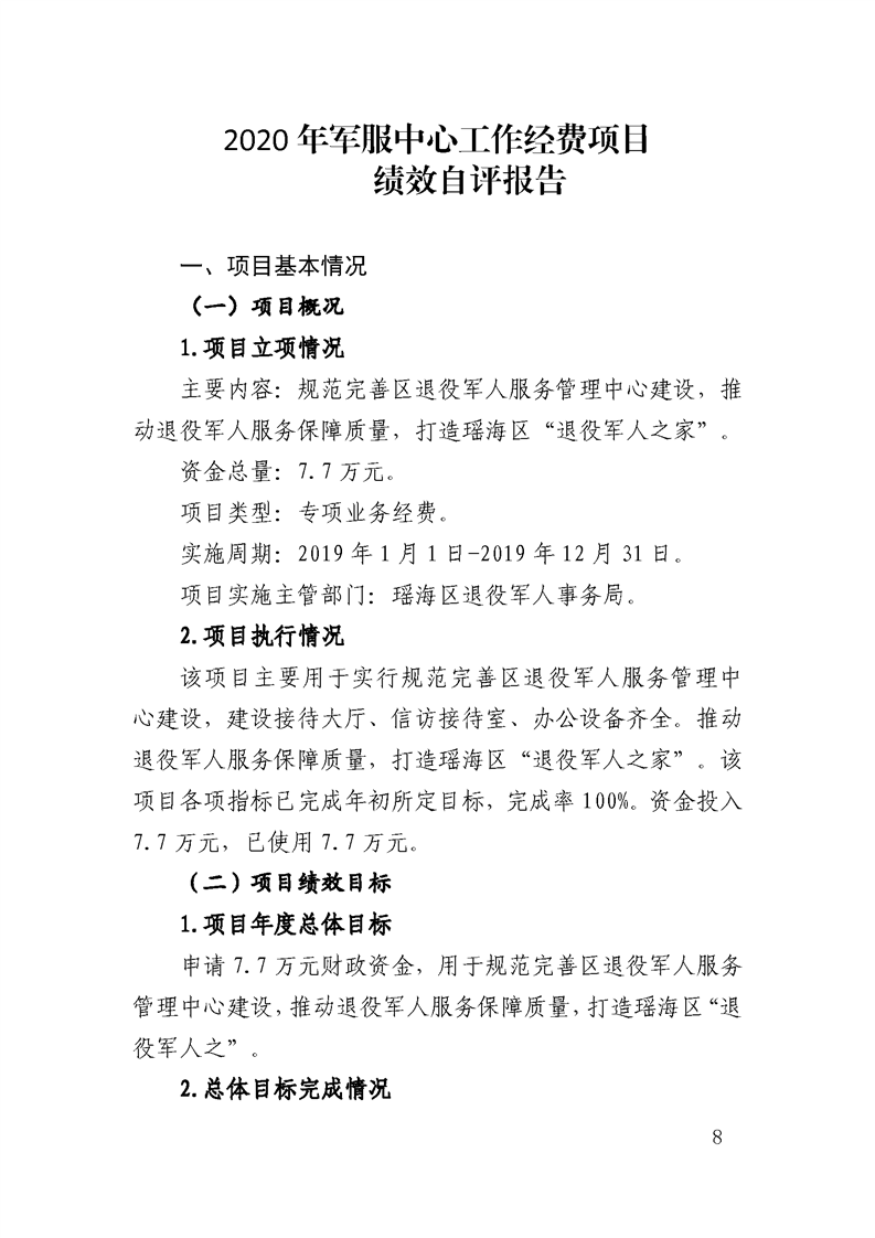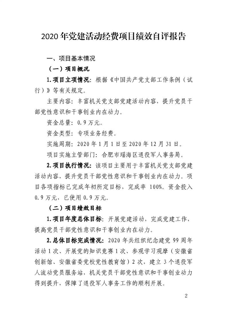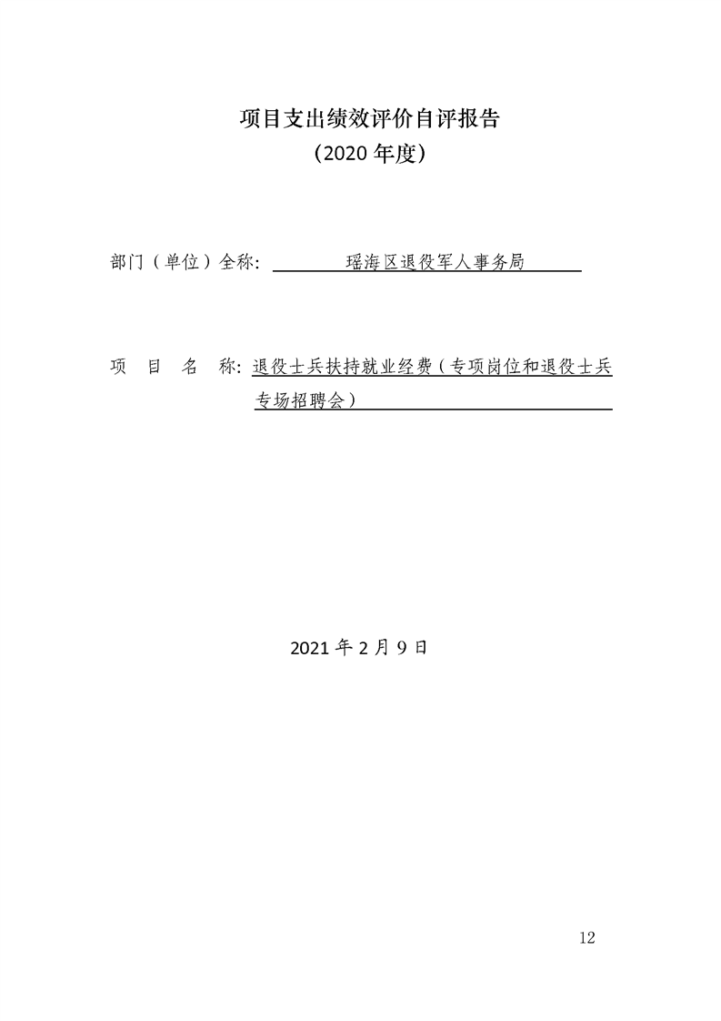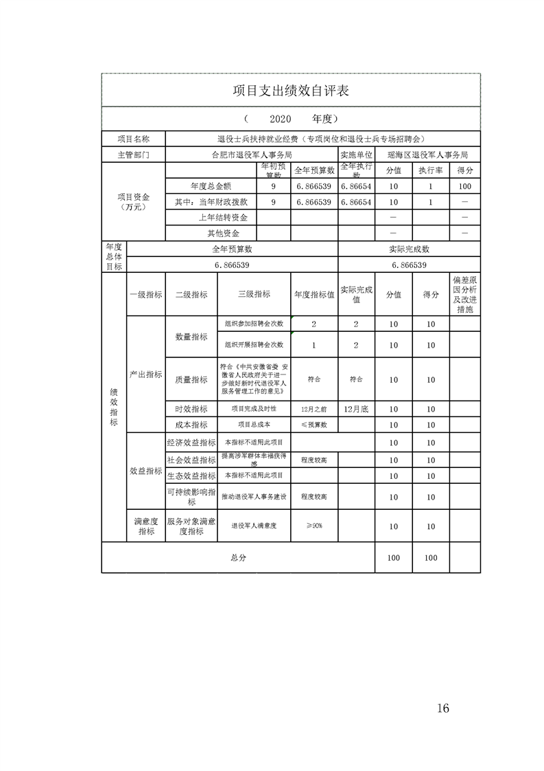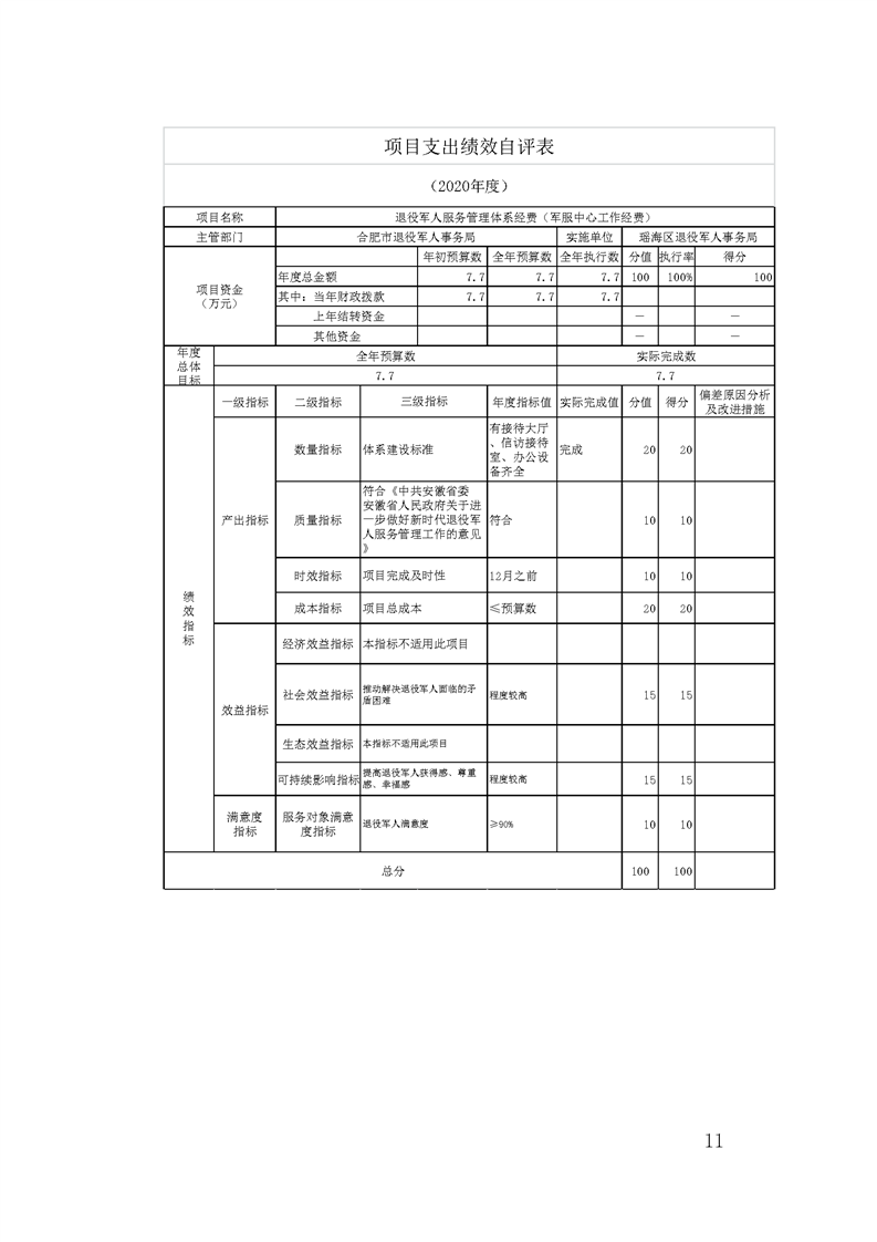 瑶海区退役军人事务局2020年度项目支出绩效自评报告 |