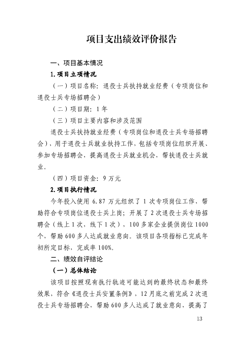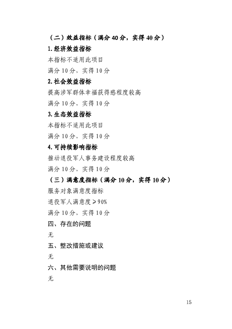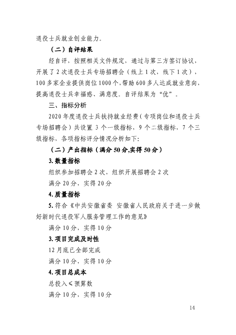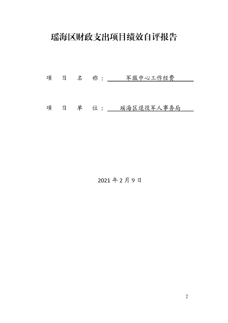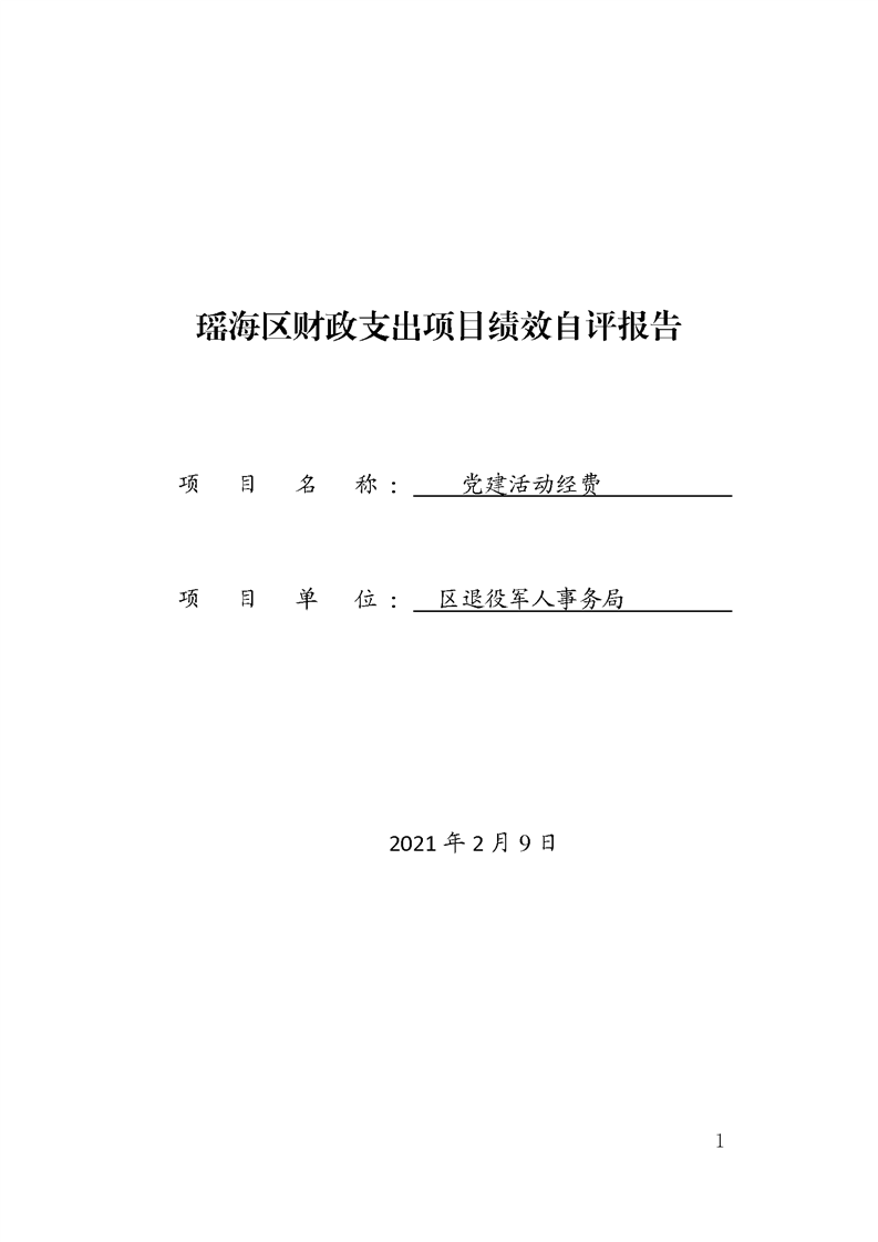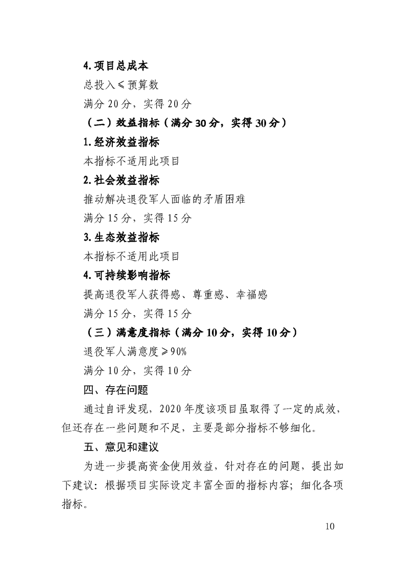 瑶海区退役军人事务局2020年度项目支出绩效自评报告 |