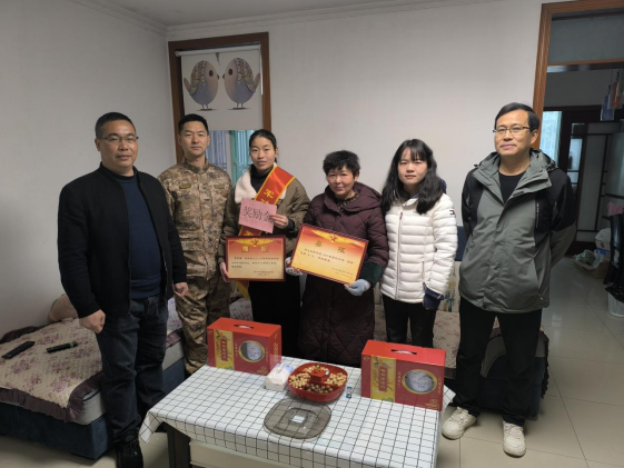 为弘扬拥军优属光荣传统,营造关爱功臣模范的社会氛围,近日,瑶海区武装部汪益宾、瑶海区退役军人事务局副局长鲁昌树、方庙街道办事处副主任刘雪萍、武装部部长郑之同一行来到铂金时代小区,为荣立三等功的现役军人家属送去喜报及慰问品。