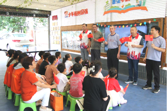 图为三里街街道退役老兵和孩子们一起唱响军歌庆祝“七一”