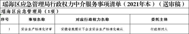 瑶海区应急管理局行政权力中介服务事项清单(2021年本) |