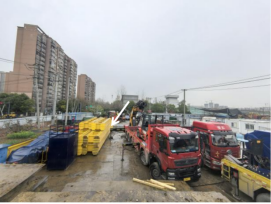 事故场地位于瑶海区乐水路与漕冲路交口南侧,为拆迁后空置场地,该场地由大兴镇漕冲社区丰收居民组看管。场地内存放有工程施工用的铺路钢板、叉车等设备器材,另停放有事发汽车起重机(以下简称吊车)等起重设备。