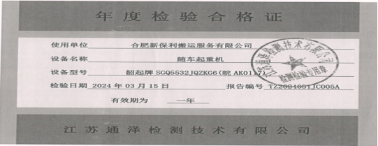 图6 皖AK0117吊车检验合格证
