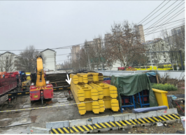 场地北侧叠放有高2.43米(高0.8米/组,叠放3层)、长6至12米的行车横梁组件(见图1、图2、图3)。