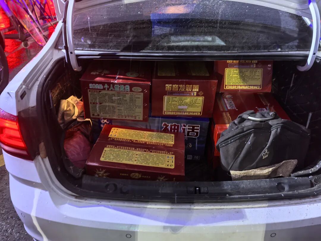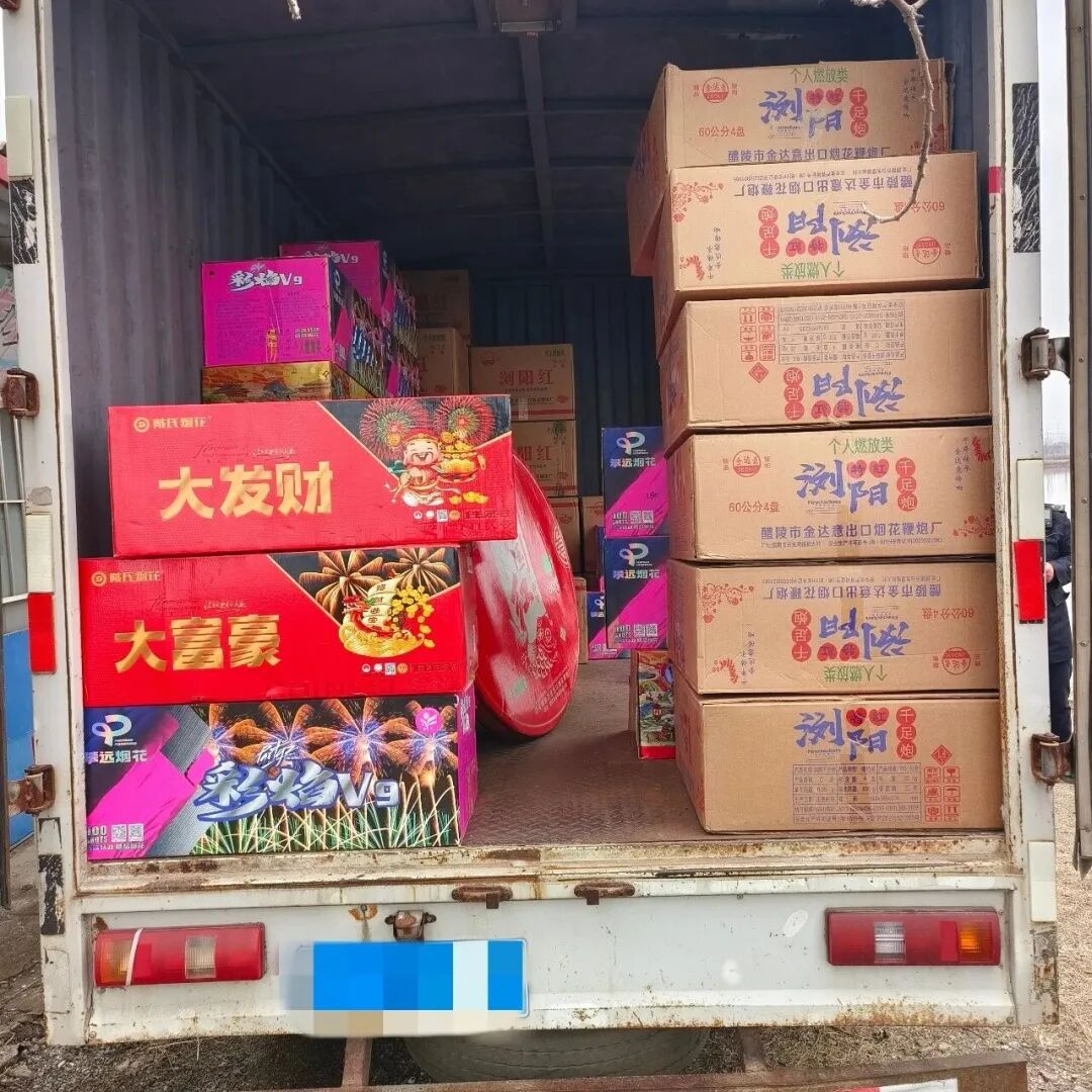 2月16日晚,在新站区三十头高速道口,执勤民警在对过往车辆进行例行安全检查时,发现一辆可疑车辆。经依法盘查,民警在该车辆内查获非法携带的6箱烟花及鞭炮。