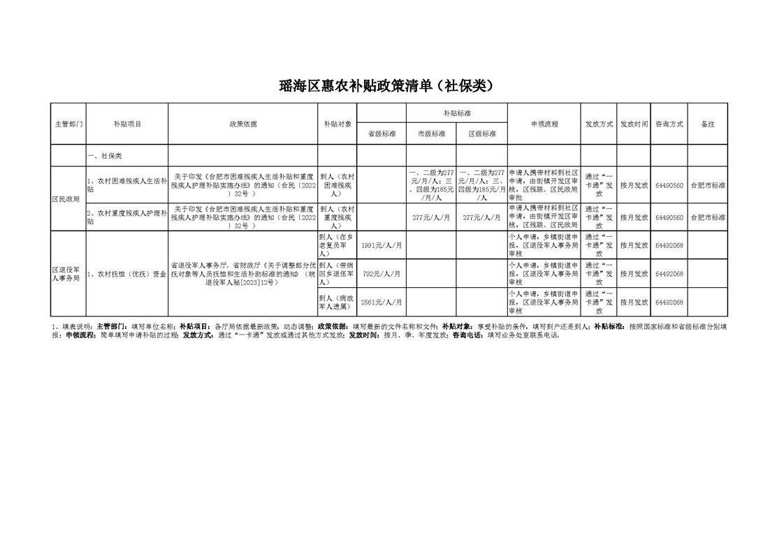 2025年瑶海区惠农补贴政策清单 |