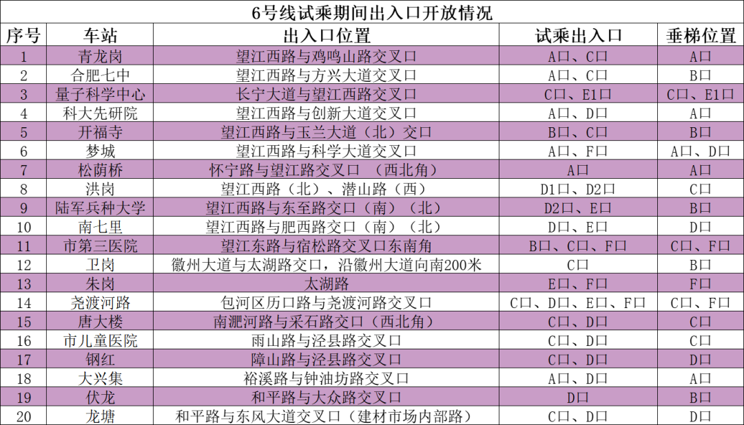 2.特别提醒:本次6号线一期试乘除北雁湖站、市博物馆站外,其余20座车站均参与免费试乘活动,为保障市民乘客试乘体验安全高效,同时确保既有线路正常运营,洪岗站、尧渡河站、市第三医院站、朱岗站试乘区域与既有线路不贯通(需要换乘的乘客通过先出站再进站的方式进行换乘)。