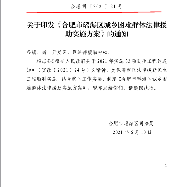 关于印发《合肥市瑶海区城乡困难群体法律援助实施方案》的通知 |