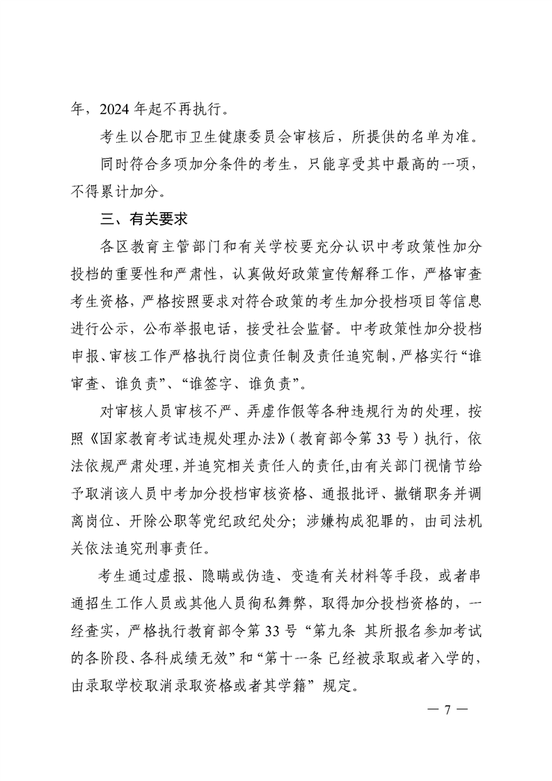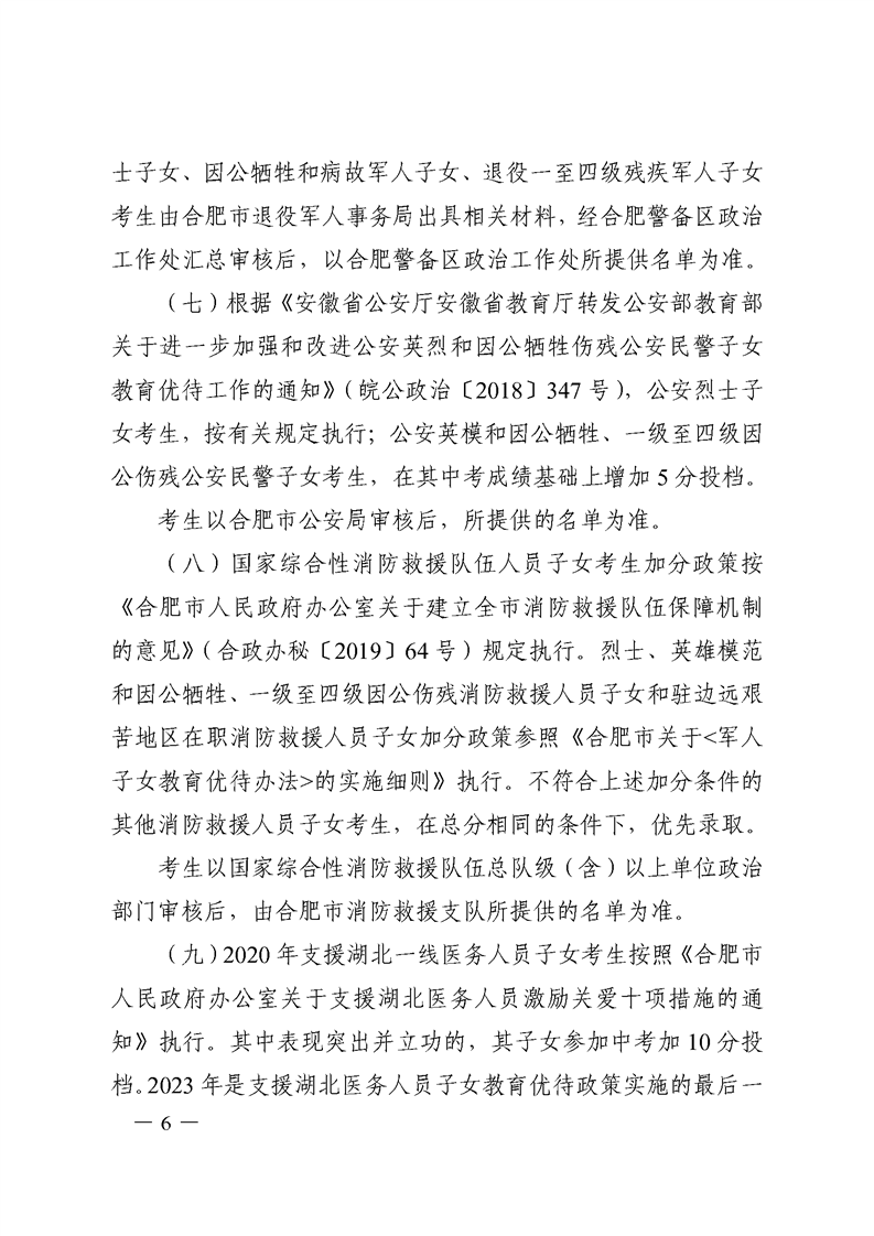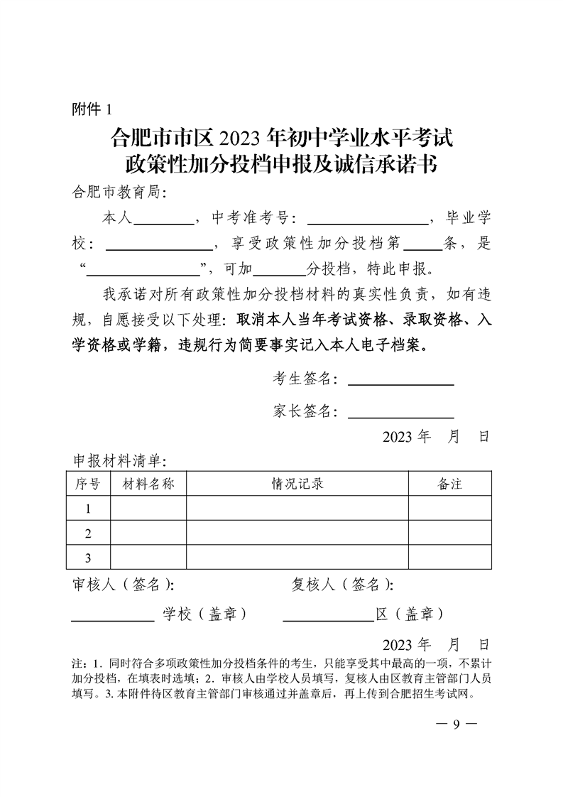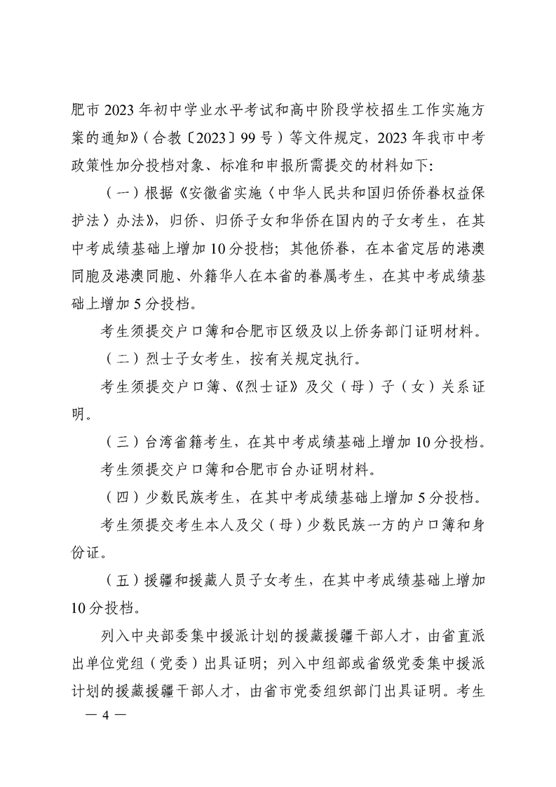 【政策文件】合招组〔2023〕1号关于做好合肥市市区2023年初中学业水平考试政策性加分投档审核工作的通知