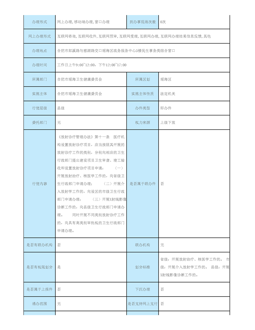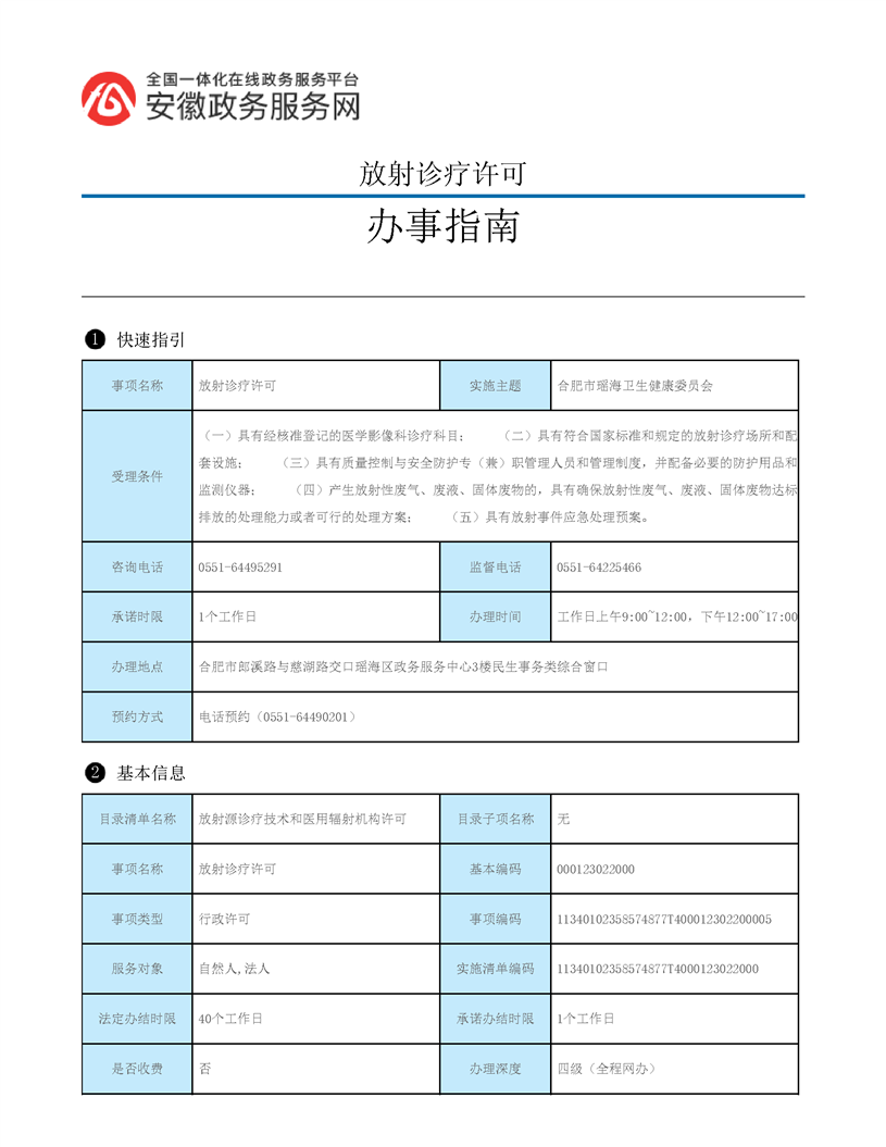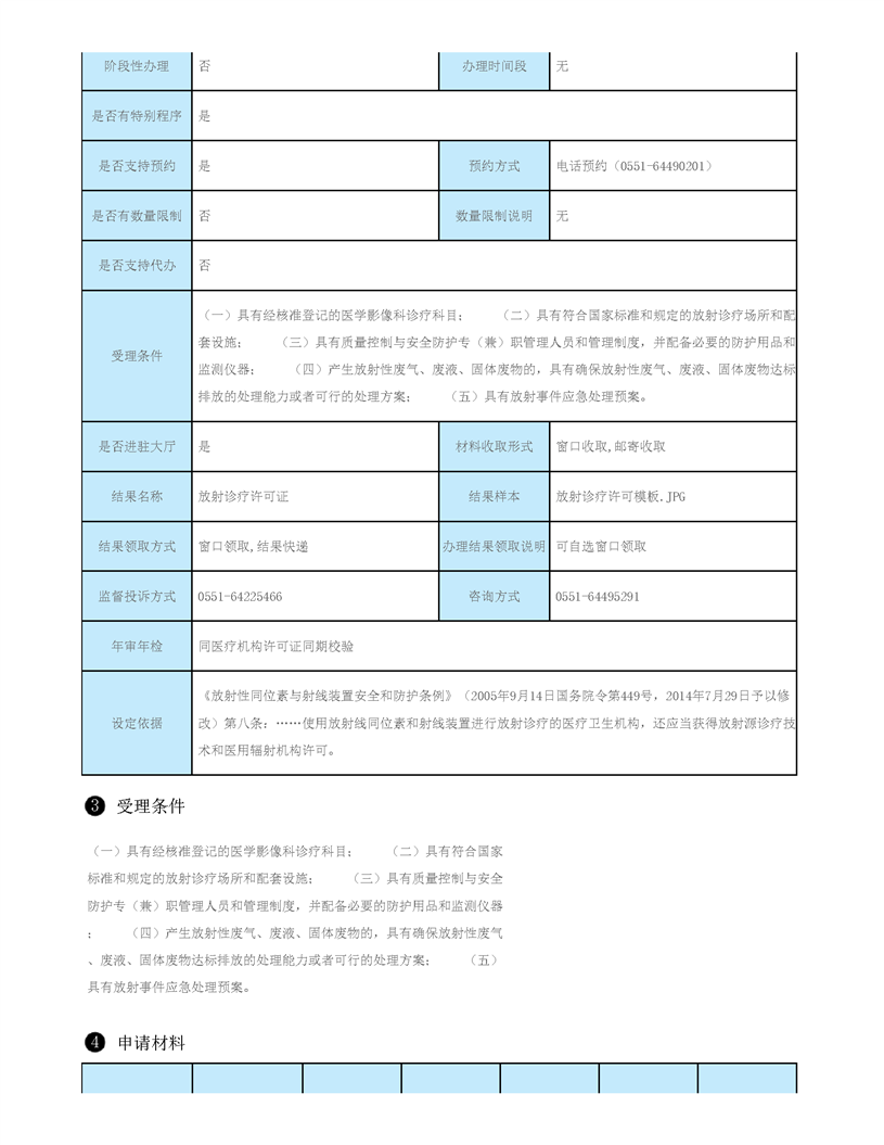 | 名 称: | 【办事指南】放射诊疗许可 | ||