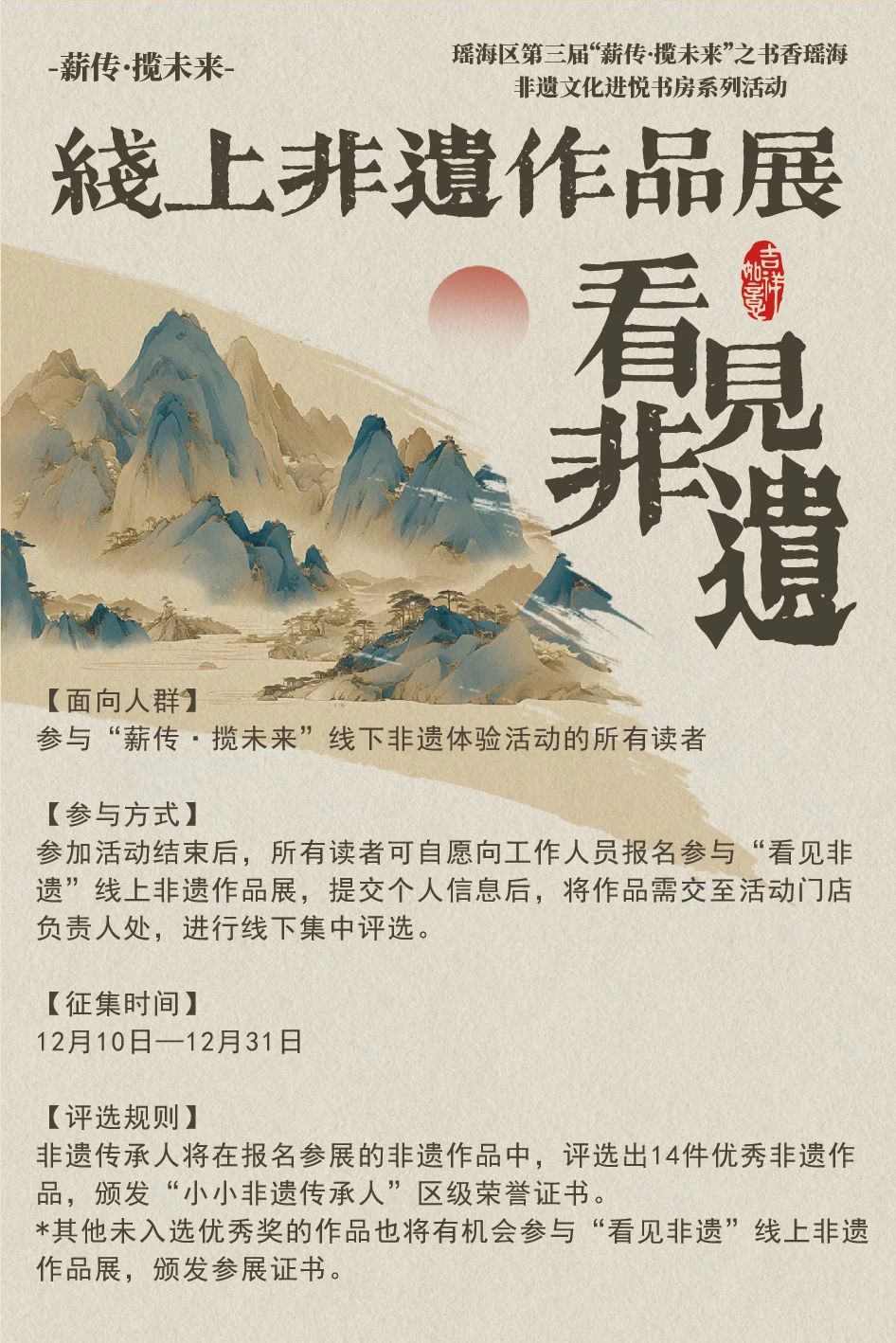 【活动通知】瑶海区第三届“薪传·揽未来”之书香瑶海——非遗文化进悦书房系列活动