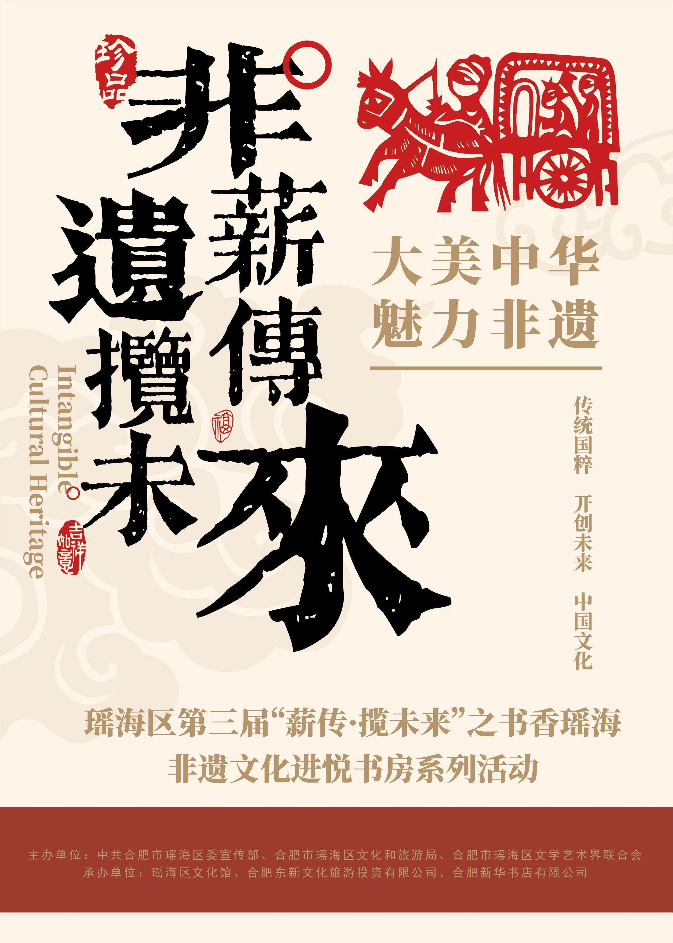 瑶海区第三届“薪传·揽未来”之书香瑶海——非遗文化进悦书房系列活动是由中共合肥市瑶海区委宣传部、合肥市瑶海区文化和旅游局、合肥市瑶海区文学艺术界联合会主办,瑶海区文化馆、合肥东新文化旅游投资有限公司、合肥新华书店有限公司承办,倡导全民学习和传承非物质文化遗产的系列文化活动。