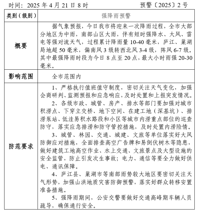 | 发布机构: | 瑶海区应急管理局 | 生成日期: | 2025-04-21 |