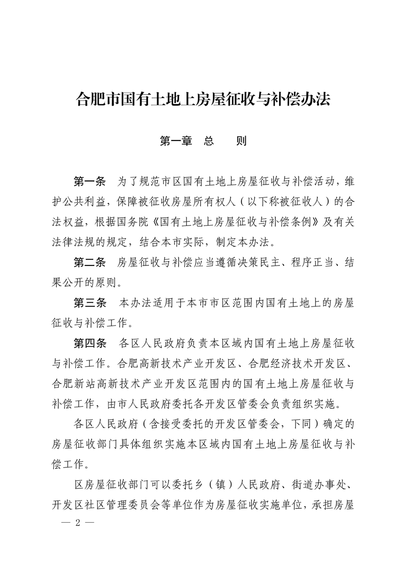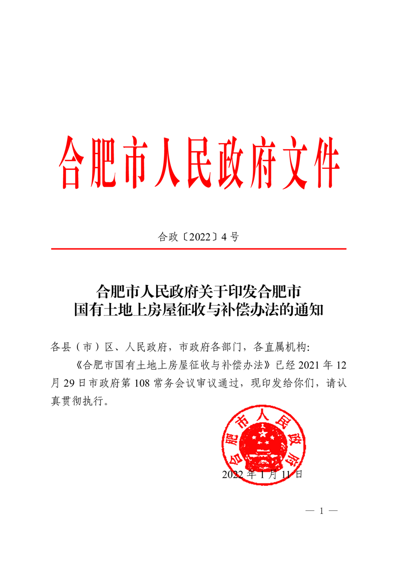 合肥市人民政府关于印发合肥市国有土地上房屋征收与补偿办法的通知(合政[2022]4号)