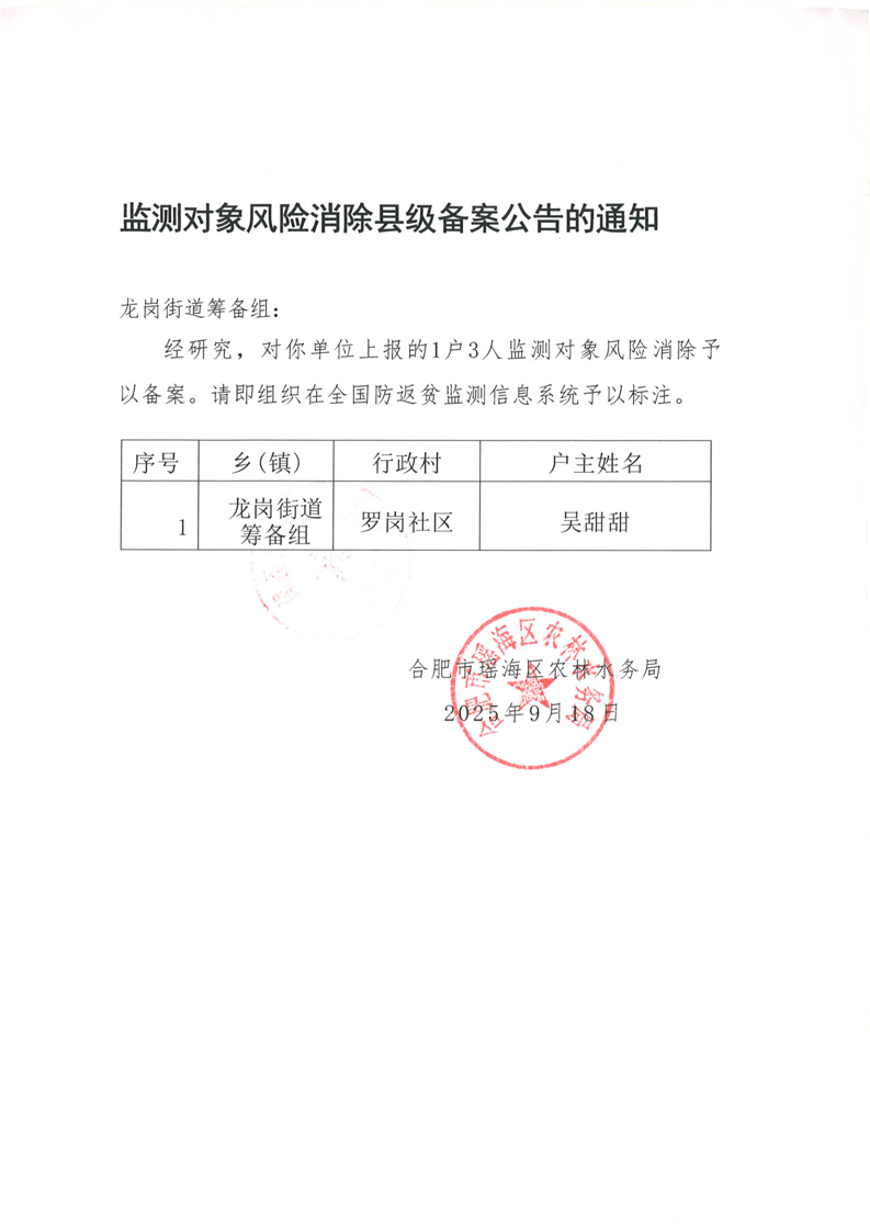 监测对象风险消除县级备案公告的通知