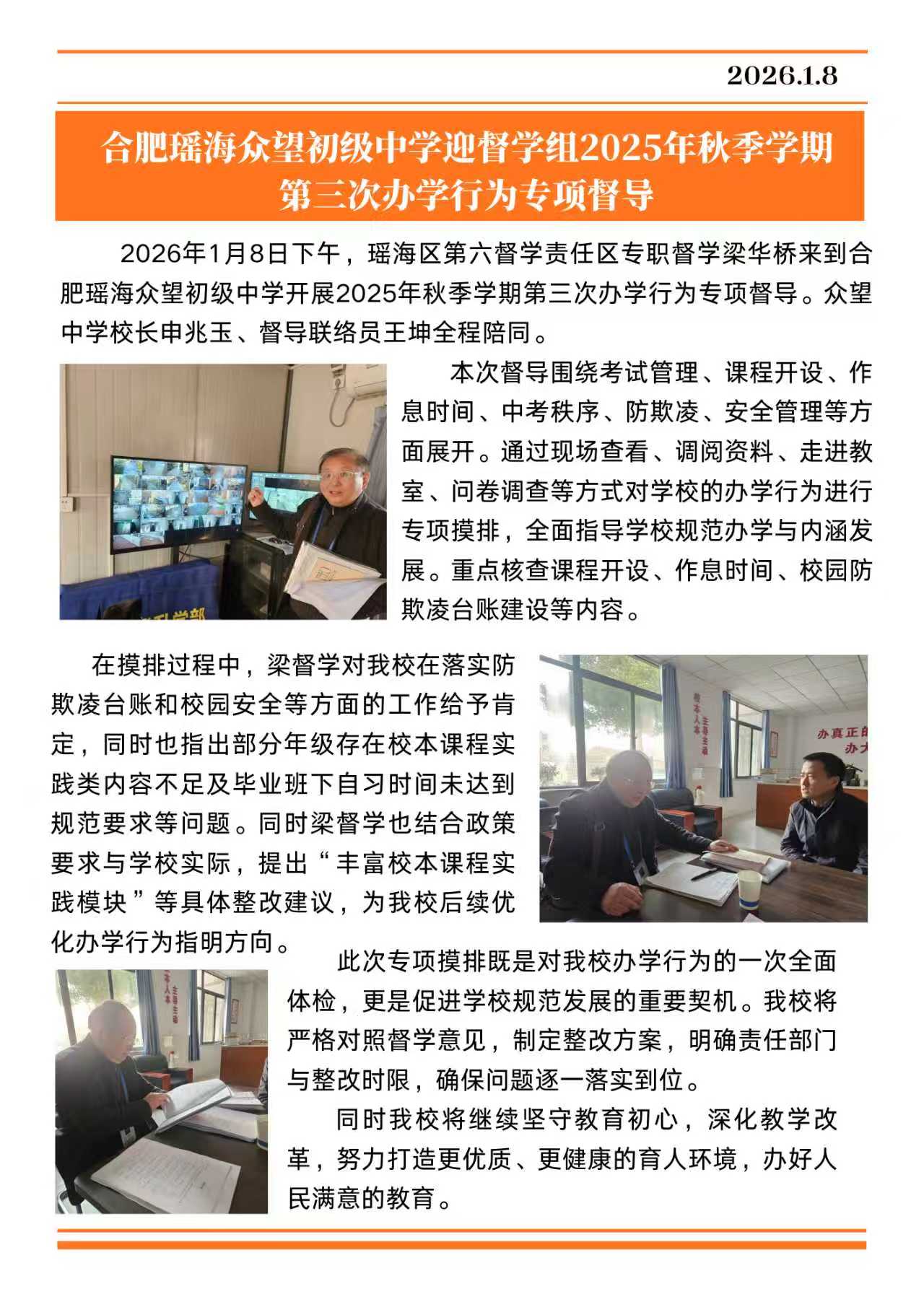 【工作动态】第六督学责任区督学专项督导瑶海众望初中办学行为工作