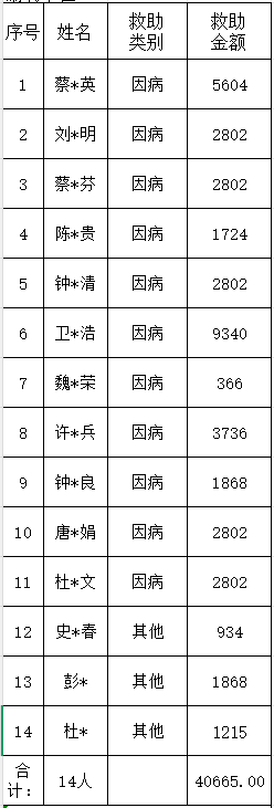 2025年1月瑶海区大兴镇困难群众临时救助花名册
