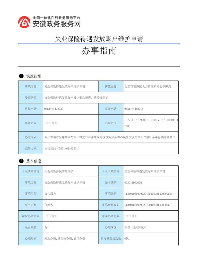 | 名 称: | 失业保险待遇发放账户维护申请办事指南 | ||