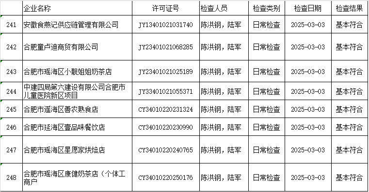 大兴镇2025年食品生产经营监督检查工作情况公示(第2期)