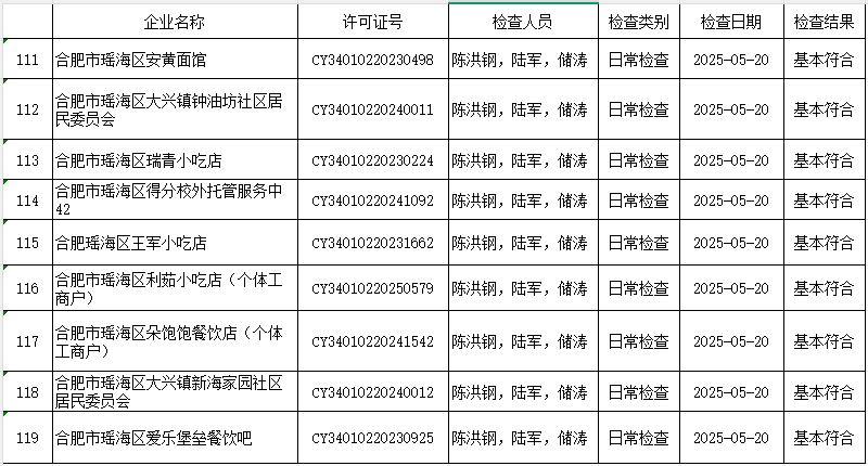 大兴镇2025年食品生产经营监督检查工作情况公示(第4期)