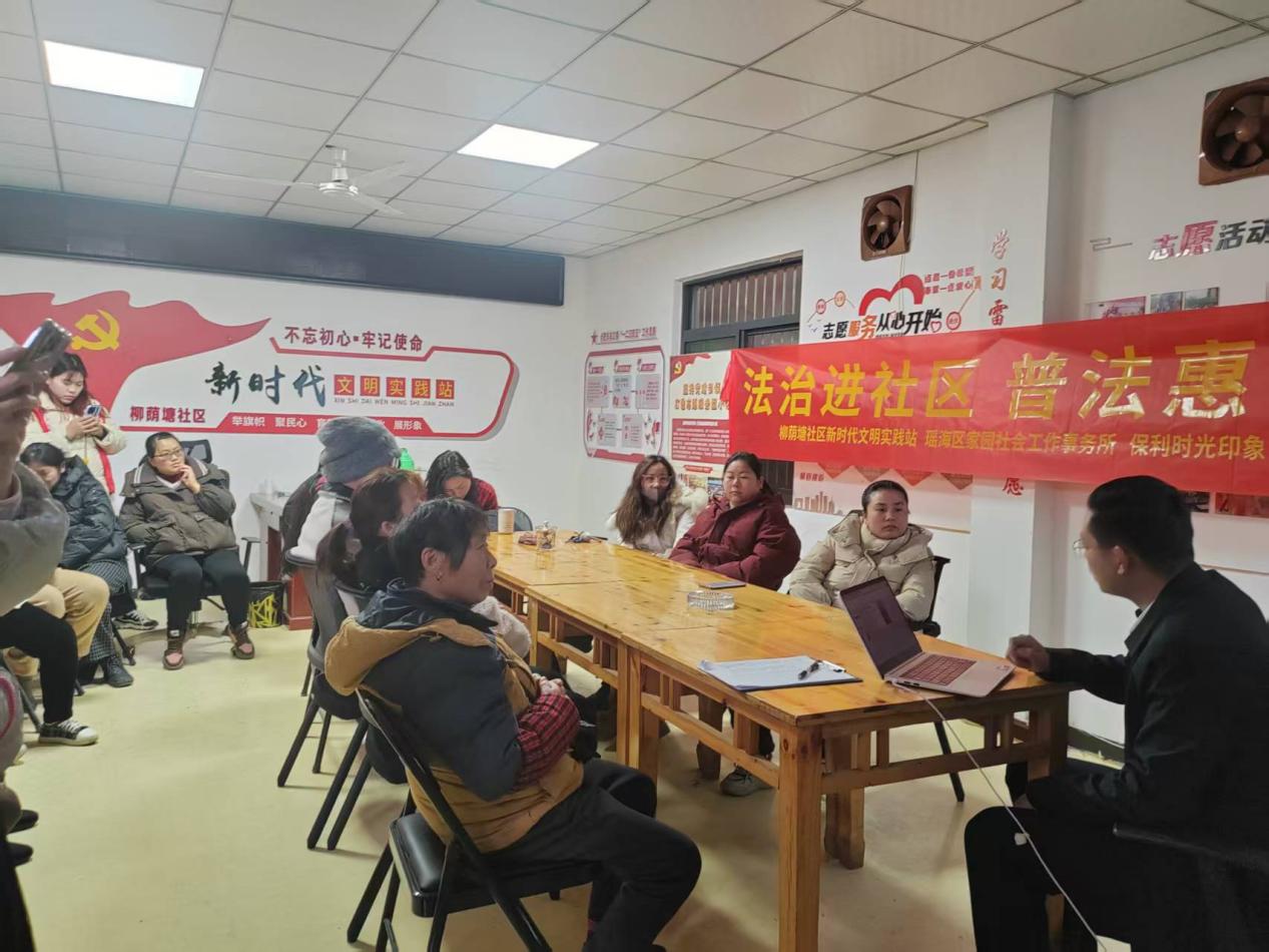 为提高社区居民的法律意识,增强自我保护及运用法律手段解决问题的能力,营造良好的法治氛围,促进社区和谐稳定,城东街道柳荫塘社区新时代文明实践站、瑶海区家园社会工作事务所、保利时光印象小区居民活动中心、全心全意公益服务部联合举办“法治进社区,普法惠民生”宣传活动。