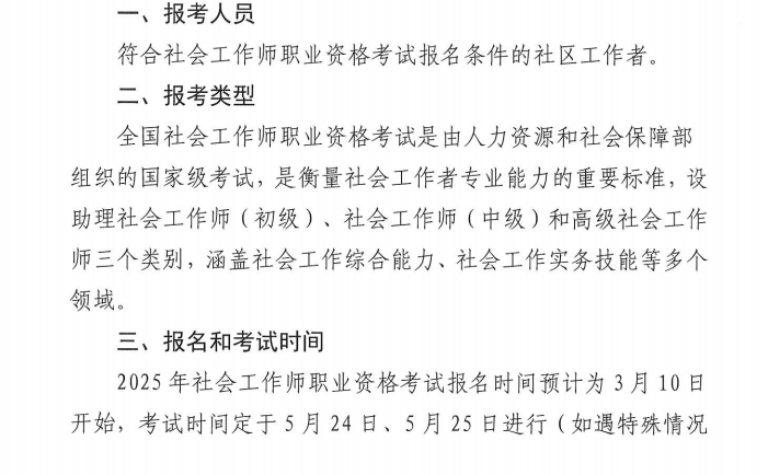 | 名 称: | 社区工作者参加全国社会工作师职业资格考试 | ||