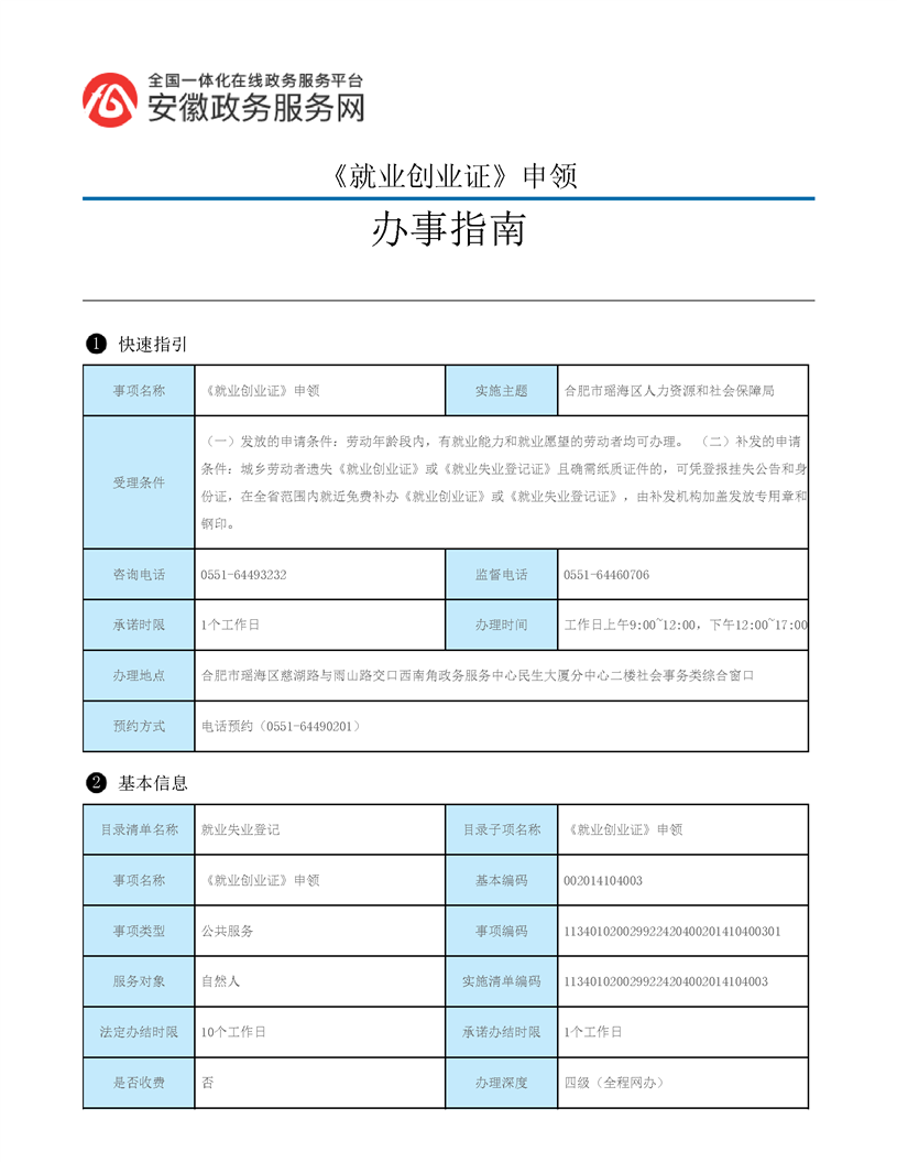 | 名 称: | 【办事指南】《就业创业证》申领 | ||