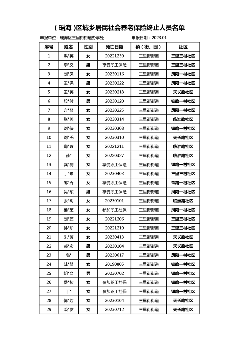 【分配结果】2023年三里街街道城乡居民养老保险注销登记