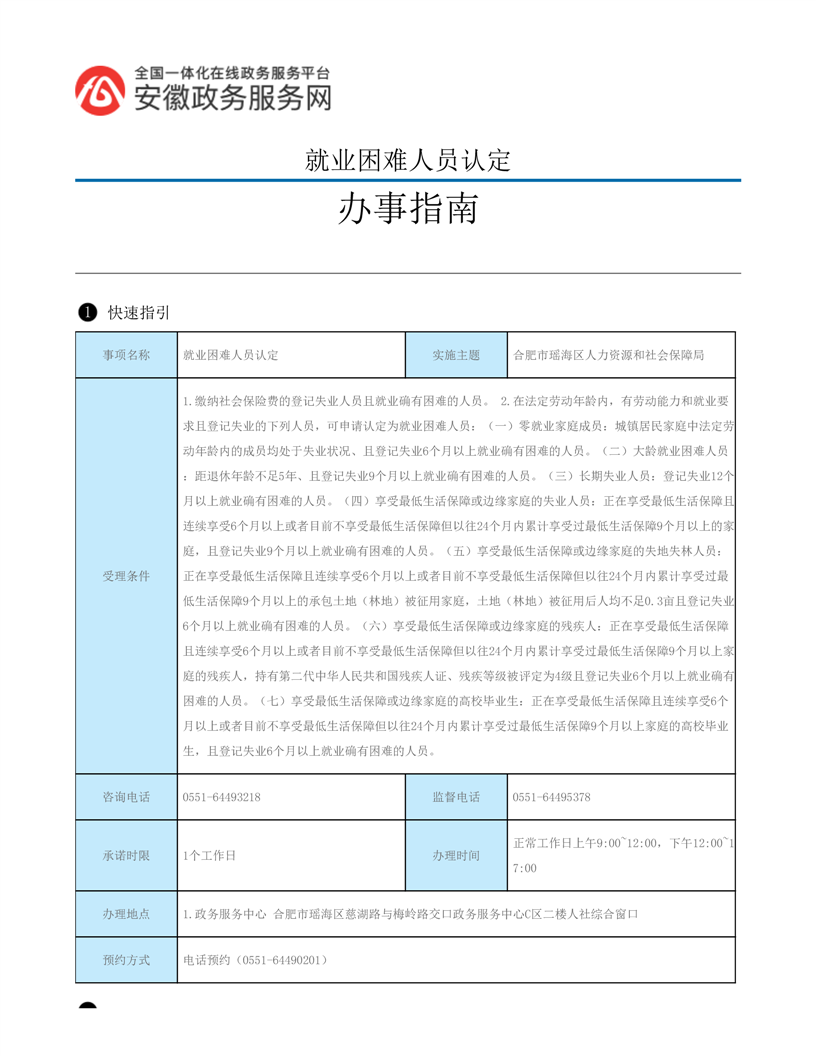 | 名 称: | 【就业困难人员认定】就业困难人员认定办理指南 | ||
