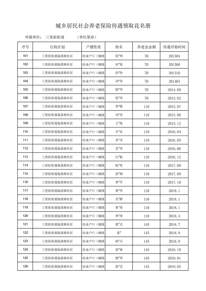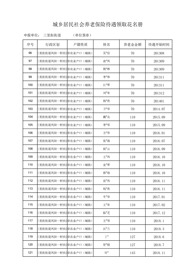 | 名 称: | 【分配结果】2025年三里街街道城乡居民养老保险待遇申领 | ||