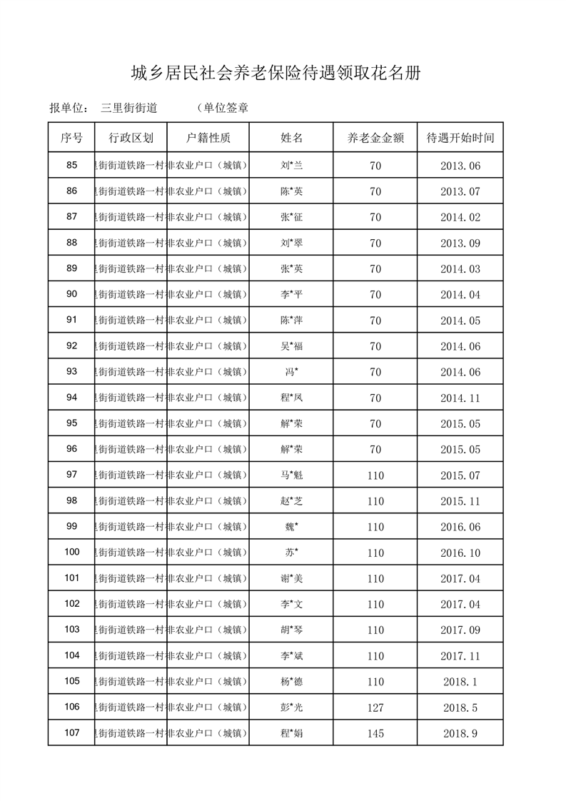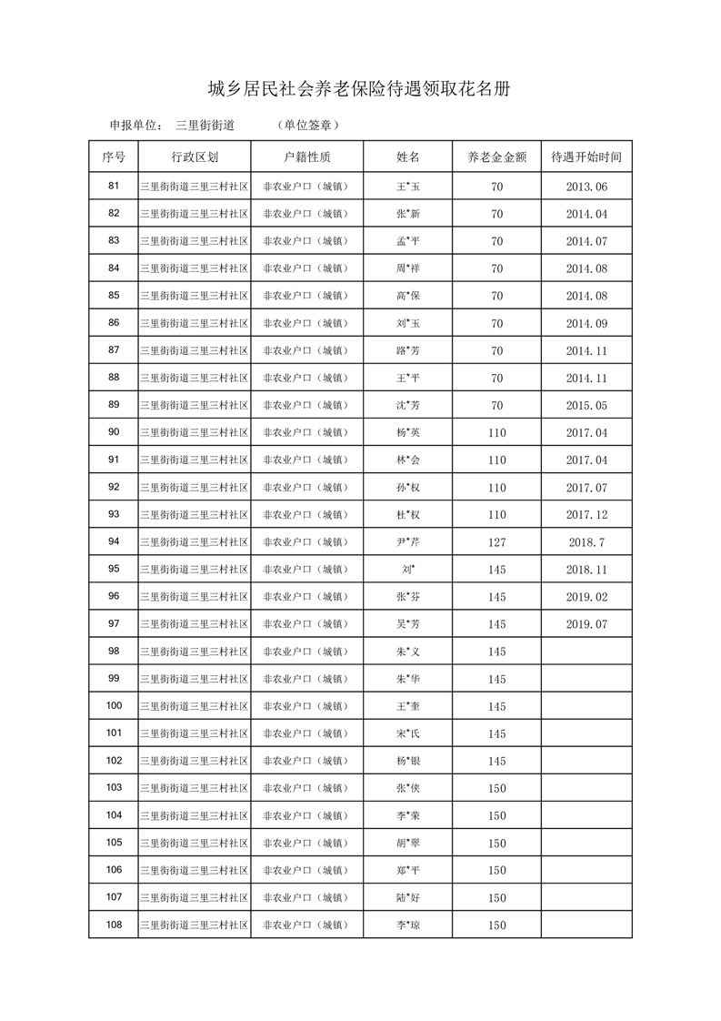 【分配结果】2025年三里街街道城乡居民养老保险待遇申领