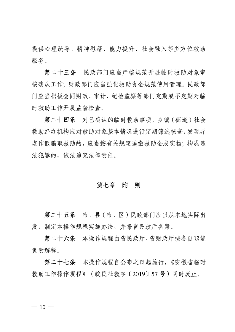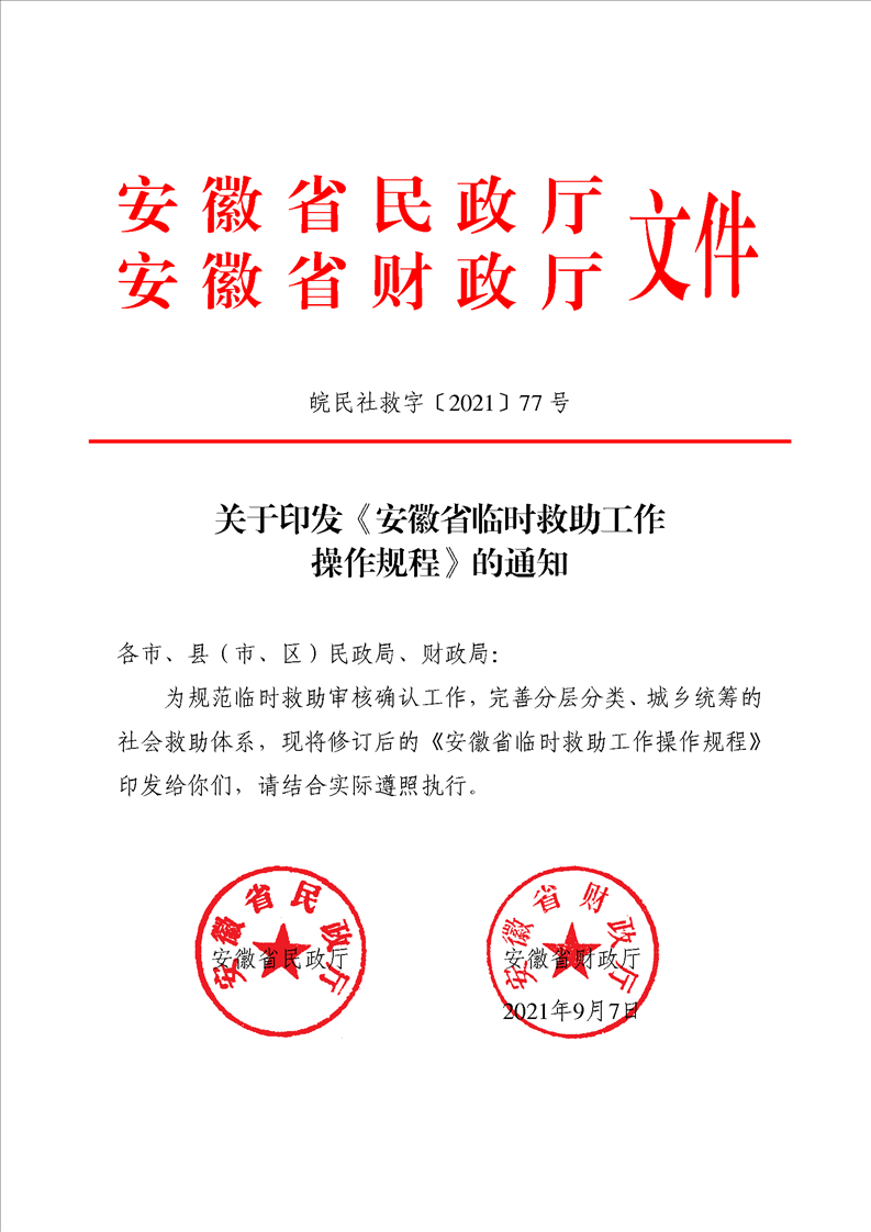 关于印发《安徽省临时救助工作操作规程》的通知(皖民社救字〔2021〕77号)