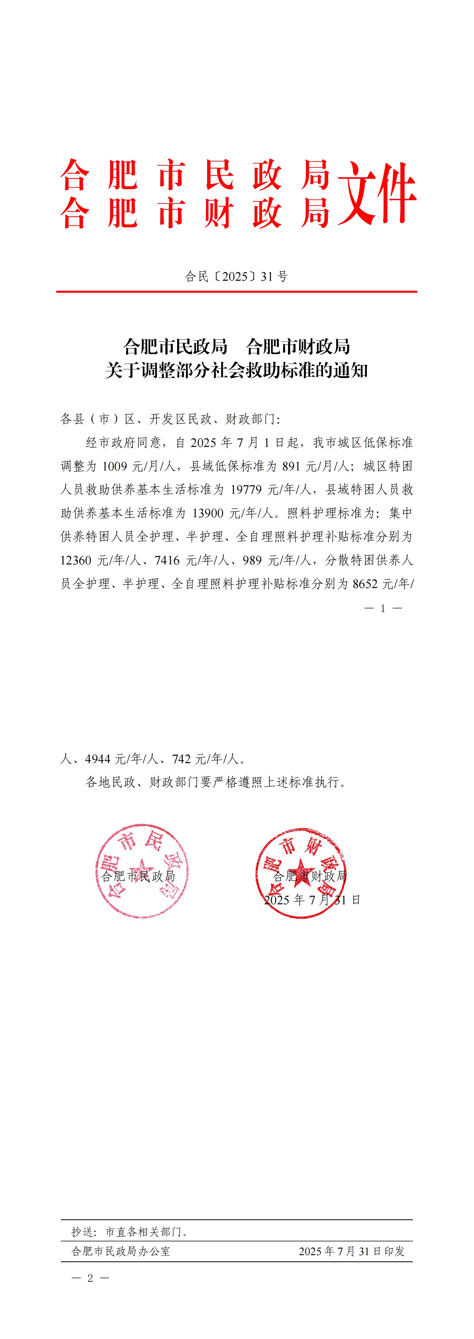 【政策标准】合肥市民政局 合肥市财政局关于调整部分社会救助标准的通知