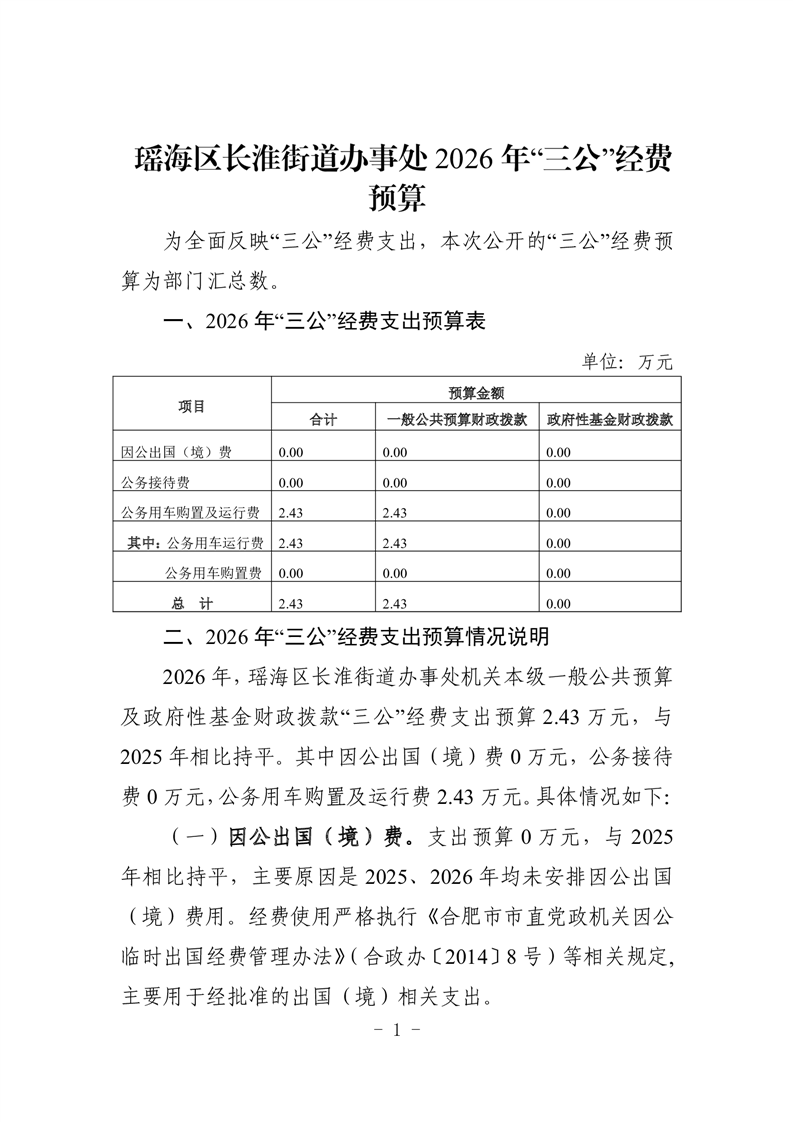 瑶海区长淮街道办事处2026年“三公”经费预算 |